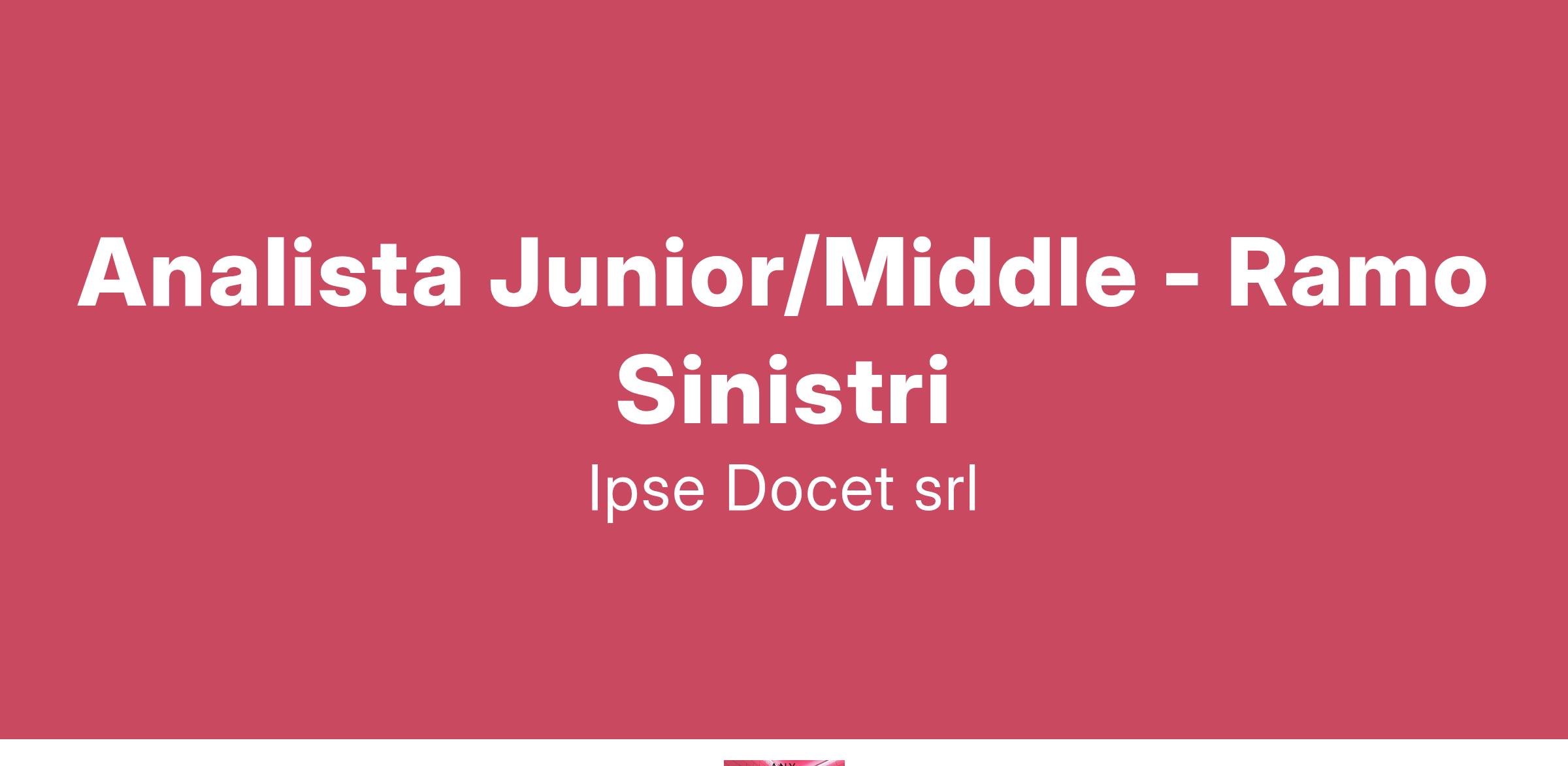CHI SIAMO Ipse Docet S.r.l. è una società di consulenza tecnico – applicativa e operante nel settore informatico. Costituita nell’anno 2008, si è oggi affermata come uno dei player principali nel mercato italiano. I nostri consulenti lavorano presso i grandi gruppi bancari, assicurativi, Telco ed altre società del tessuto industriale italiano, attraverso progetti diretti e in partnership con le big della consulenza. DESCRIZIONE DEL RUOLO Ipse Docet è alla ricerca di un* analista con esperienza di circa 2 anni in ambito insurance , in particolare ramo Sinistri , per seguire l'evoluzione del sistema di gestione sinistri relativamente a tutte le fasi del ciclo di vita di un sinistro (Denuncia, perizia, liquidazione, flussi IVASS). La risorsa dovra`: seguire le fasi di raccolta requisiti; supportare il Business nelle proposte di soluzione; redigere la documentazione a supporto; Si occupera` inoltre delle fasi di testing interno e di collaudo utente anche tramite l'accesso al DB. OFFERTA : Assunzione a tempo indeterminato, CCNL Commercio (14 mensilità); Qualora si possegga la Partita Iva, si valutano anche collaborazioni con Liberi Professionisti. Sede di lavoro: Milano, 2 giorni di smart e 3 giorni in presenza.