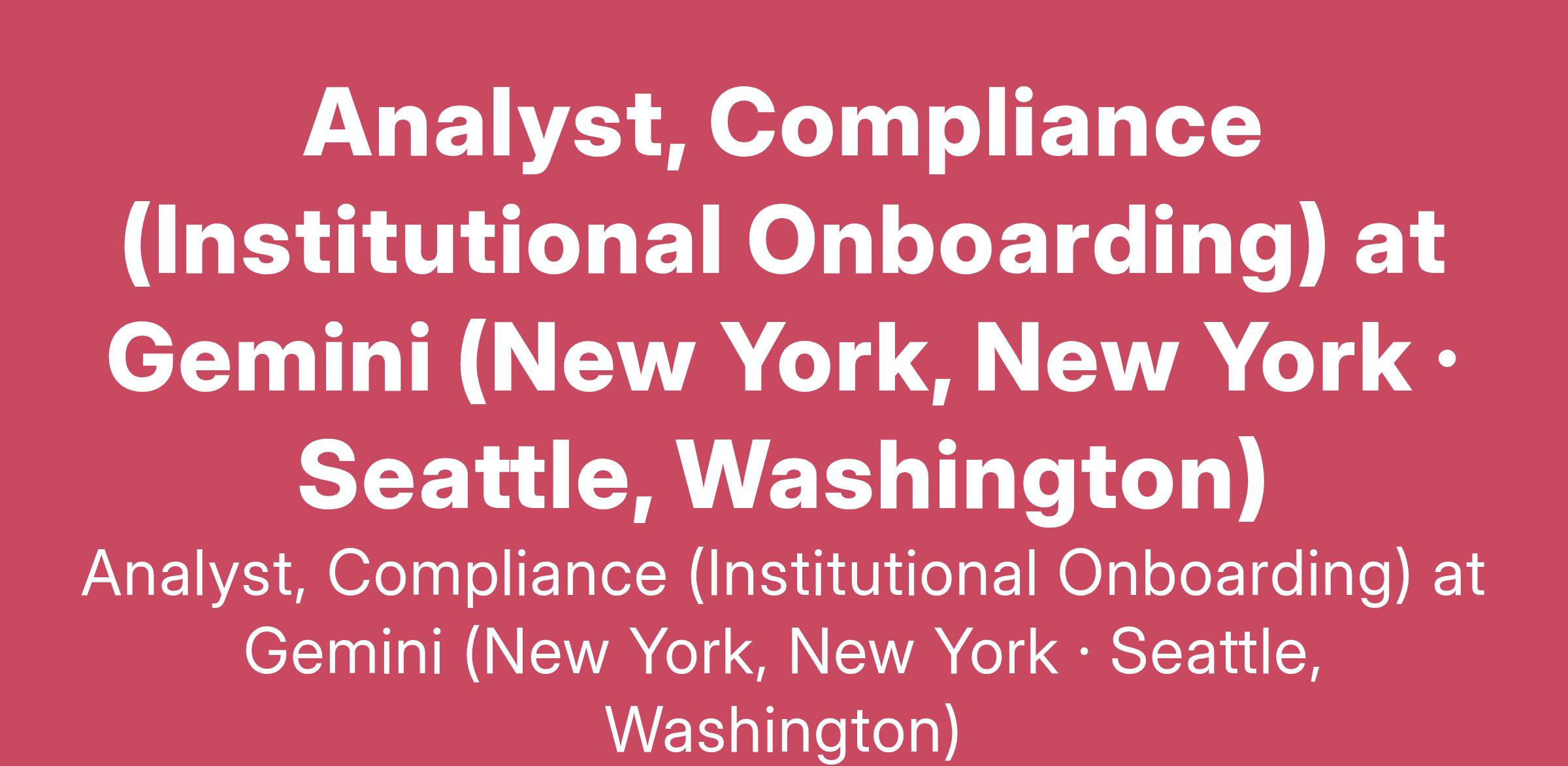 Analyst, Compliance (Institutional Onboarding) at Gemini (New York, New York · Seattle, Washington)
