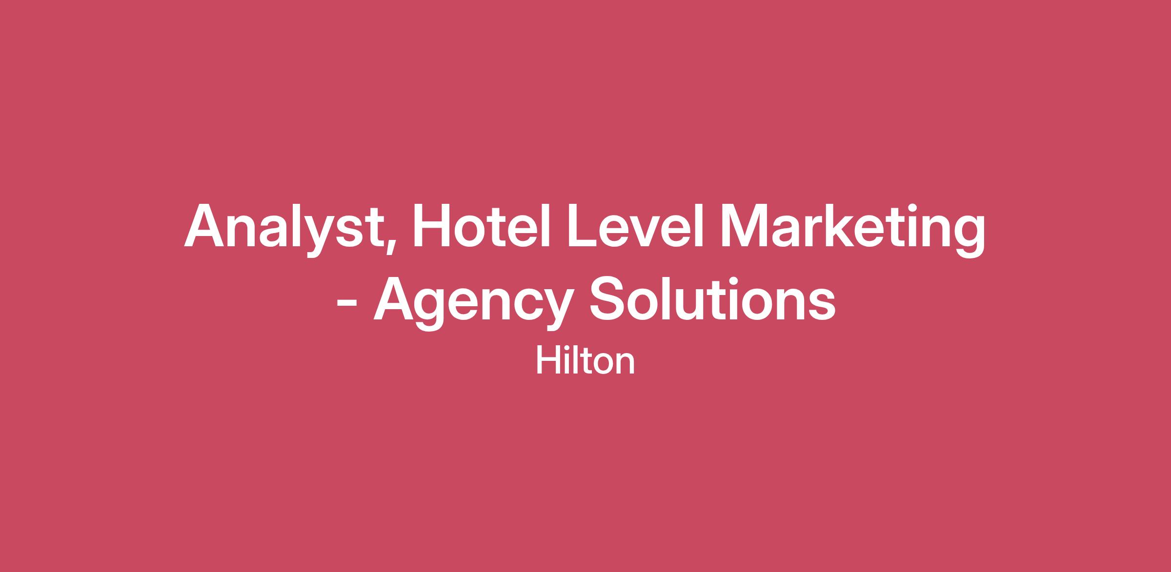 ***This is a remote position based in Chicago, IL***As an Analyst on Hilton's Americas Marketing team - reporting into our Manager, Hotel Level Marketing Agency Solutions— you will be part of the broader Commercial Services organization collaborating with revenue management, sales, and analytics, the core of Hilton's commercial engine, to deliver profitable growth.Join our newly launched in-house marketing agency, where creativity meets performance. You'll help shape our transformation by managing multi-channel marketing campaigns with the goal of driving commercial performance.This strategic role blends creativity, digital marketing expertise, data-driven execution, and hotel partnership together. You'll manage a portfolio of hotels, improve paid media strategies, and ensure engagement in our Hotel Level Marketing Program. HOW WE WILL SUPPORT YOUHilton is proud to support the mental and physical wellbeing of all Team Members so they can Thrive personally and professionally in a diverse and inclusive environment, thanks to programs and benefits such as:Go Hilton travel program: 110 nights of discounted travel with room rates as low as $40/nightHilton Shares: Our employee stock purchase program (ESPP) - you can purchase Hilton shares at a 15 percent discountPaid parental leave for eligible Team Members, including partners and adoptive parentsMental health resources including free counseling through our Employee Assistance ProgramPaid Time Off (PTO)Learn more about the rest of our benefitsAt Hilton, we believe every Team Member is a leader. We are committed to offering leadership development opportunities and programs through every step of a Team Member’s career journey and at every level, both in our hotels and across corporate. **Available benefits may vary depending upon terms and conditions of employment and are subject to the terms and conditions of the plans.HOW YOU WILL MAKE AN IMPACTYour role is important and below are some of the fundamental job duties that make your work unique.What your day-to-day will be like:Strategic Hotel Partner: You will be responsible for a portfolio of hotels aligned by market, serving as a marketing advisor and crafting tailored paid media marketing strategies.Campaign Strategy, Execution, and Optimization: You will provide budget and investment recommendations, translate commercial performance data from analytics platforms into actionable insights, and lead the strategy of multi-channel marketing campaigns —including the execution of paid search, paid social, metasearch, and more.How you will collaborate with others:You will meet with the hotels in your assigned portfolio and communicate campaign performance, risks, and opportunities.You will be the central liaison between the hotel, agency partners, and Enterprise partner teamsWhat projects you will take ownership of:Program Innovation & Advocacy: Understand hotel needs and identify opportunities for program evolutionWHY YOU'LL BE A GREAT FITYou have these minimum qualifications:One (1) year of professional work experience in paid mediaExperience in Meta and Google Ads, including campaign strategy and optimization across Search, Display, and Video, with an understanding of audience targeting, bidding strategies, and performance measurement.Travel 20%.It would be useful if you have:Bachelor's degree in marketing, advertising, or a related field.Experience working within Salesforce and Adobe AnalyticsProfessional certifications from Google and Meta.A marketing or media agency background, including hands-on account management experience.Located in Chicago, IL areaWHAT IT IS LIKE WORKING FOR HILTONHilton, the #1 World's Best Workplace, is a leading global hospitality company with a diverse portfolio of world-class brands. Dedicated to filling the earth with the light and warmth of hospitality, we have welcomed more than 3 billion guests in our more-than 100-year history. Hilton is proud to have an award-winning workplace culture and we are consistently named among one of the World’s Best Workplaces. Check out the Hilton Careers blog and Instagram to learn more about what it’s like to be on Team Hilton!. We provide reasonable accommodations to qualified persons with disabilities to perform the essential functions of the position and provide other benefits and privileges of employment in accordance with applicable law. Please contact us if you require an accommodation during the application process.Hilton offers its eligible team members a comprehensive benefits package including medical and prescription drug coverage, dental coverage, vision coverage, life insurance, short-and long-term disability insurance, access to our employee stock purchase plan (ESPP) where you can purchase Hilton shares at a 15 percent discount, a 401(k) savings plan, 20 days of paid time off accruing over your first year of employment and increasing up to 25 days after completing one year of full employment, up to 12 weeks of paid leave for birth parents and 4 weeks for non-birth parents, 10 paid holidays and 2 floating holidays throughout the year, up to 5 bereavement days, flexible spending accounts, a health savings account, an employee assistance program, access to a care coordination program (“Wellthy”), a legal services program, an educational assistance program, adoption assistance, a backup childcare program, pre-tax commuter benefit and our travel discount. The annual salary range for this role is $55,000 - $80,000 and is determined based on applicable and specialized experience and location. Subject to plan terms and conditions, you will be eligible to participate in the Hilton Annual Incentive (Bonus) Plan, consistent with other team members at the same level and/or position within the Company. #LI-REMOTE