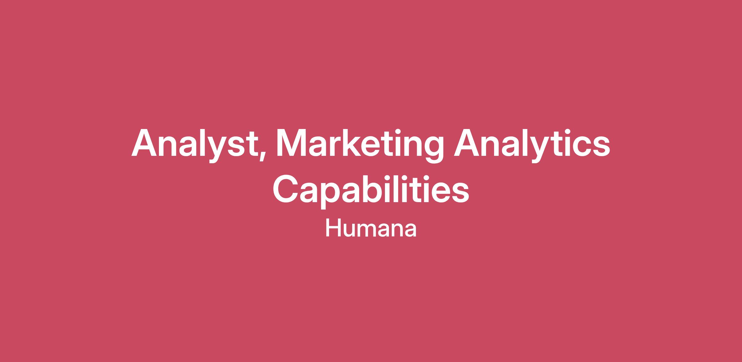 Become a part of our caring community and help us put health first Become a part of our caring communityJoin Humana’s Integrated Marketing Analytics team as an Analyst, Marketing Analytics Capabilities, where you’ll support the development and maintenance of tools that power our marketing analytics ecosystem.Role ResponsibilitiesAs a member of the Marketing Analytics Capabilities team, you’ll assist in enhancing and maintaining marketing analytics platforms that support performance measurement and strategic decision-making. You’ll contribute to tool governance, documentation, and adoption efforts, helping ensure stakeholders have access to reliable, user-friendly solutions that drive insight and impact.Key responsibilities include:Support the implementation and maintenance of marketing analytics tools, including Media Mix Modeling (MMM) platforms and other solutions that enable performance measurement, attribution, and strategic insight generation (e.g. multi-touch attribution).Assist in coordinating with third-party partners for solutions such as identity resolution and audience data enrichment.Collaborate with internal data scientists and marketing analytics peers to enable development of advanced methodologies like multi-touch attribution.Contribute to documentation and governance efforts to ensure tools are well-managed, accessible, and aligned with business needs.Help monitor platform usage and gather stakeholder feedback to support continuous improvement and adoption of analytics solutions.Participate in cross-functional initiatives to enhance the marketing analytics ecosystem and promote data-driven decision-making.Use your skills to make an impactSponsorship is not available for this position (e.g. H-1B, E-3, TN, 0-1, STEM OPT, or any immigration work authorization requiring a written submission from the company to a government agency). Only candidates with Citizenship or Lawful Permanent Residency in the U.S. will be considered.Use your skills to make an impact Required QualificationsBachelor’s degree in Marketing, Information Systems, or a related field.1+ years of experience in marketing analytics, business intelligence, or data platform support roles.Familiarity with marketing analytics tools and methodologies, including exposure to Media Mix Modeling (MMM) or similar performance measurement frameworks.Experience assisting with third-party vendor coordination for solutions such as identity resolution, audience segmentation, or data enrichment.Basic understanding of marketing attribution concepts, such as multi-touch attribution or customer journey analysis.Preferred QualificationsExposure to identity resolution platforms such as LiveRamp, Neustar, or similar vendors.Familiarity with the Adobe Experience Cloud stack, including Adobe Analytics or Adobe Audience Manager.Experience supporting marketing analytics initiatives in cloud environments (e.g., Snowflake, Azure, AWS).Knowledge of HIPAA and data privacy standardsInterest in developing expertise in marketing measurement tools and contributing to the evolution of analytics capabilitiesExperience with automation or data integration processesWork at Home InformationTo ensure Home or Hybrid Home/Office associates’ ability to work effectively, the self-provided internet service of Home or Hybrid Home/Office associates must meet the following criteria:At minimum, a download speed of 25 Mbps and an upload speed of 10 Mbps is recommended; wireless, wired cable or DSL connection is suggestedSatellite, cellular and microwave connection can be used only if approved by leadershipAssociates who live and work from Home in the state of California, Illinois, Montana, or South Dakota will be provided a bi-weekly payment for their internet expense.Humana will provide Home or Hybrid Home/Office associates with telephone equipment appropriate to meet the business requirements for their position/job.Work from a dedicated space lacking ongoing interruptions to protect member PHI / HIPAA informationVirtual Pre-ScreenAs part of our hiring process for this opportunity, we are using an interviewing technology called HireVue to enhance our hiring and decision-making ability. HireVue allows us to quickly connect and gain valuable information from you pertaining to your relevant skills and experience at a time that is best for your schedule.If you are selected to move forward in the process, you will receive a text message inviting you to participate in a HireVue prescreen. In this prescreen, you will receive a set of questions via text and given the opportunity to respond to each question. You should anticipate this prescreen taking about 15 minutes. Your responses will be reviewed and if selected to move forward, you will be contacted with additional details involving the next step in the process.Alert: Humana values personal identity protection. Please be aware that applicants selected for leader review may be asked to provide their social security number, if it is not already on file. When required, an email will be sent from Humana@myworkday.com with instructions on how to add the information into your official application on Humana’s secure website.Travel: While this is a remote position, occasional travel to Humana's offices for training or meetings may be required.Scheduled Weekly Hours40Pay RangeThe compensation range below reflects a good faith estimate of starting base pay for full time (40 hours per week) employment at the time of posting. The pay range may be higher or lower based on geographic location and individual pay will vary based on demonstrated job related skills, knowledge, experience, education, certifications, etc. $97,900 - $133,500 per year This job is eligible for a bonus incentive plan. This incentive opportunity is based upon company and/or individual performance.Description of BenefitsHumana, Inc. and its affiliated subsidiaries (collectively, “Humana”) offers competitive benefits that support whole-pers