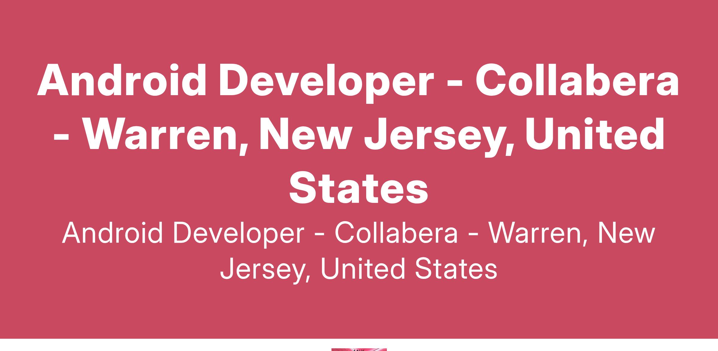 Collabera recognizes true potential of human capital and provides people the right opportunities for growth and professional excellence. Collabera offers a full range of benefits to its employees including paid vacations, holidays, personal days, Medical, Dental and Vision insurance, 401K retirement savings plan, Life Insurance, Disability Insurance.
