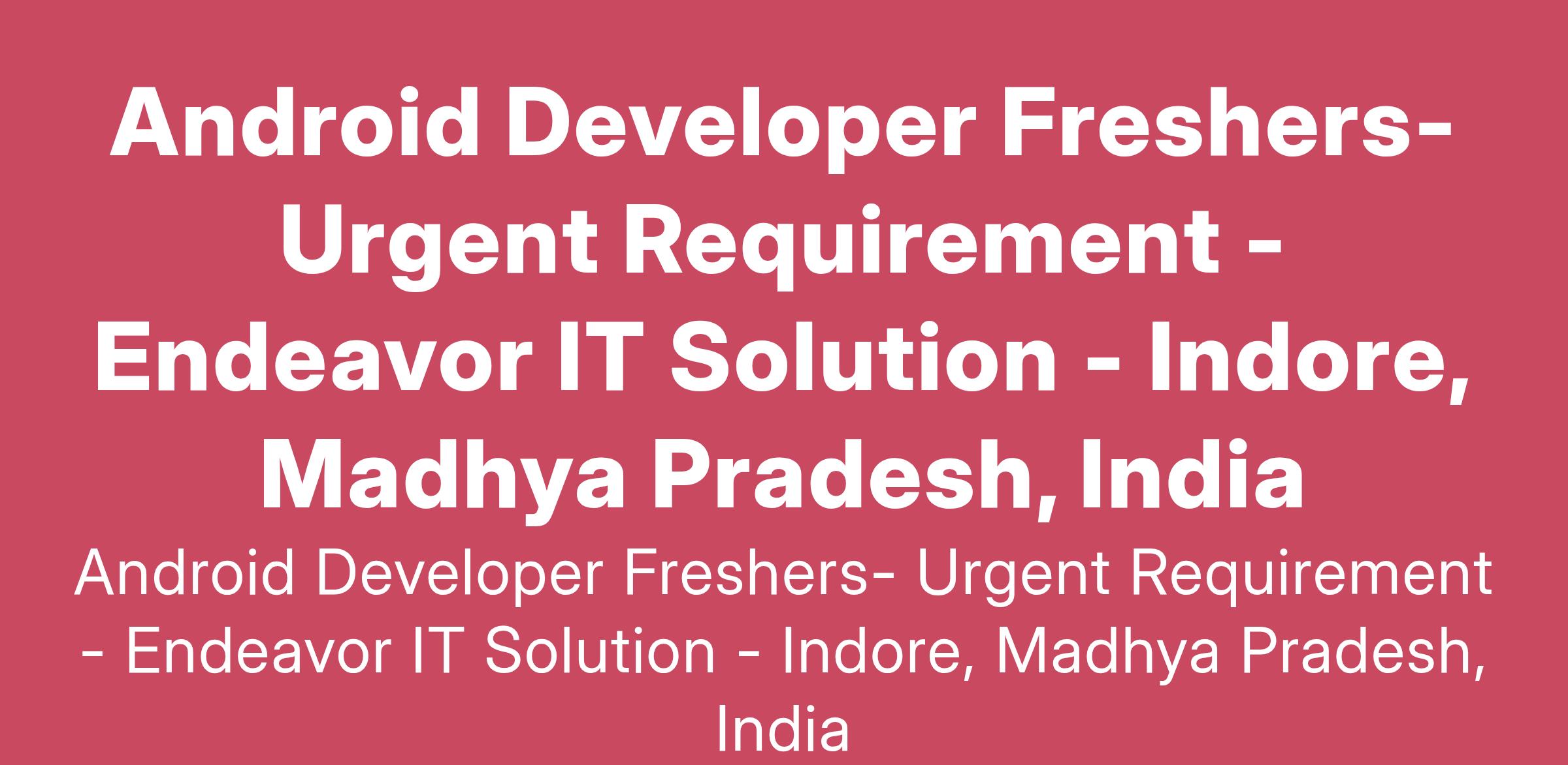 Immediate requirement of a creative Fresher Android developer who thinks outside the box and can push to the limits at times! We're looking for someone who's as passionate as we are about mobile apps for Android:
