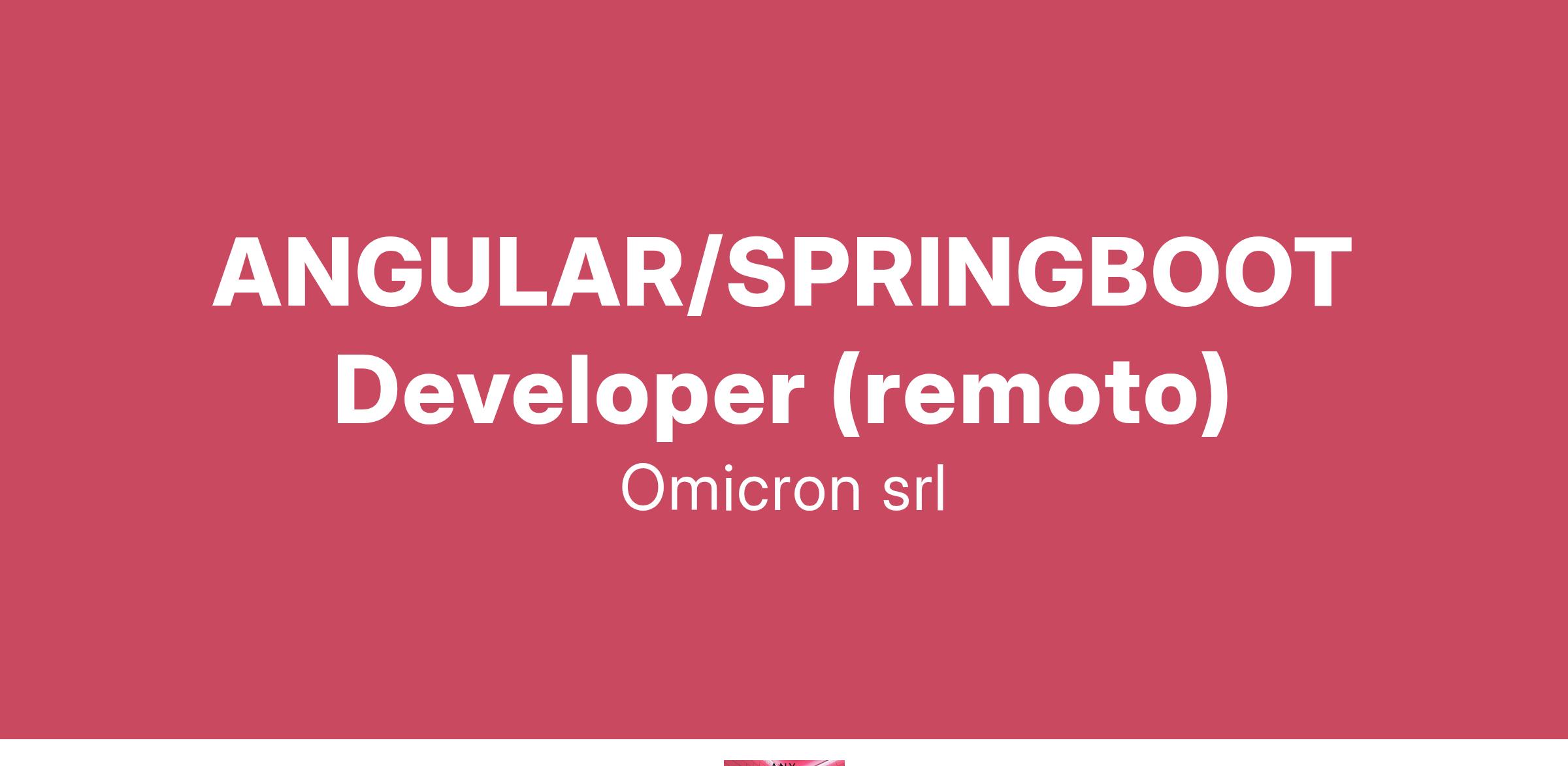 Omicron S.r.l., società in forte espansione nell’area della consulenza informatica e nella realizzazione d’importanti progetti ad alto contenuto tecnologico, ricerca: ANGULAR/SPRINGBOOT Developer (remoto) La risorsa supporterà il cliente finale nelle attività in qualità di Software Developer con esperienza in Angular e SpringBoot. Lavorerà con team già strutturati di medie dimensioni, tra le sue attività ci sarà la gestione in autonomia dei propri task . La risorsa avrà l’occasione di prendere parte a importanti progetti per nostri clienti in ambito PA. Si offre: •Contratto a tempo determinato di 12 mesi con possibilità di rinnovo. •Retribuzione fissa commisurata alle effettive competenze maturate. Sede di lavoro: remoto Gl’interessati possono candidarsi inviando il CV all'indirizzo mail: L’offerta si intende rivolta a candidati ambosessi, nel rispetto del D.Lgs. n. 198/2006 e ss.mm.ii. e dei Decreti Legislativi n. 215 e n. 216 del 2003 sulle parità di trattamento. I candidati sono invitati a leggere l’informativa privacy ai sensi degli artt. 13 e 14 del Reg. EU 679/2016.