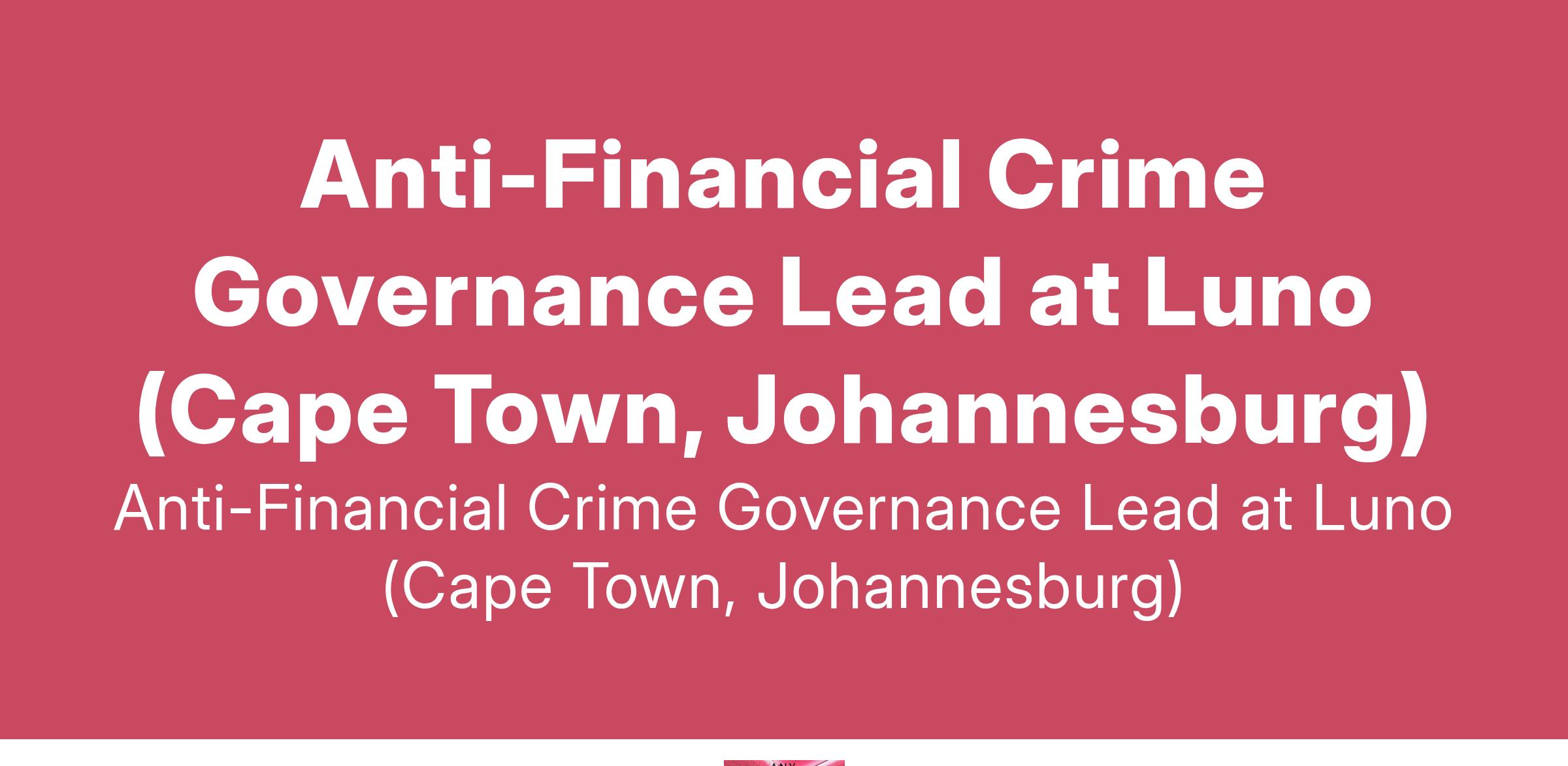 Anti-Financial Crime Governance Lead at Luno (Cape Town, Johannesburg)