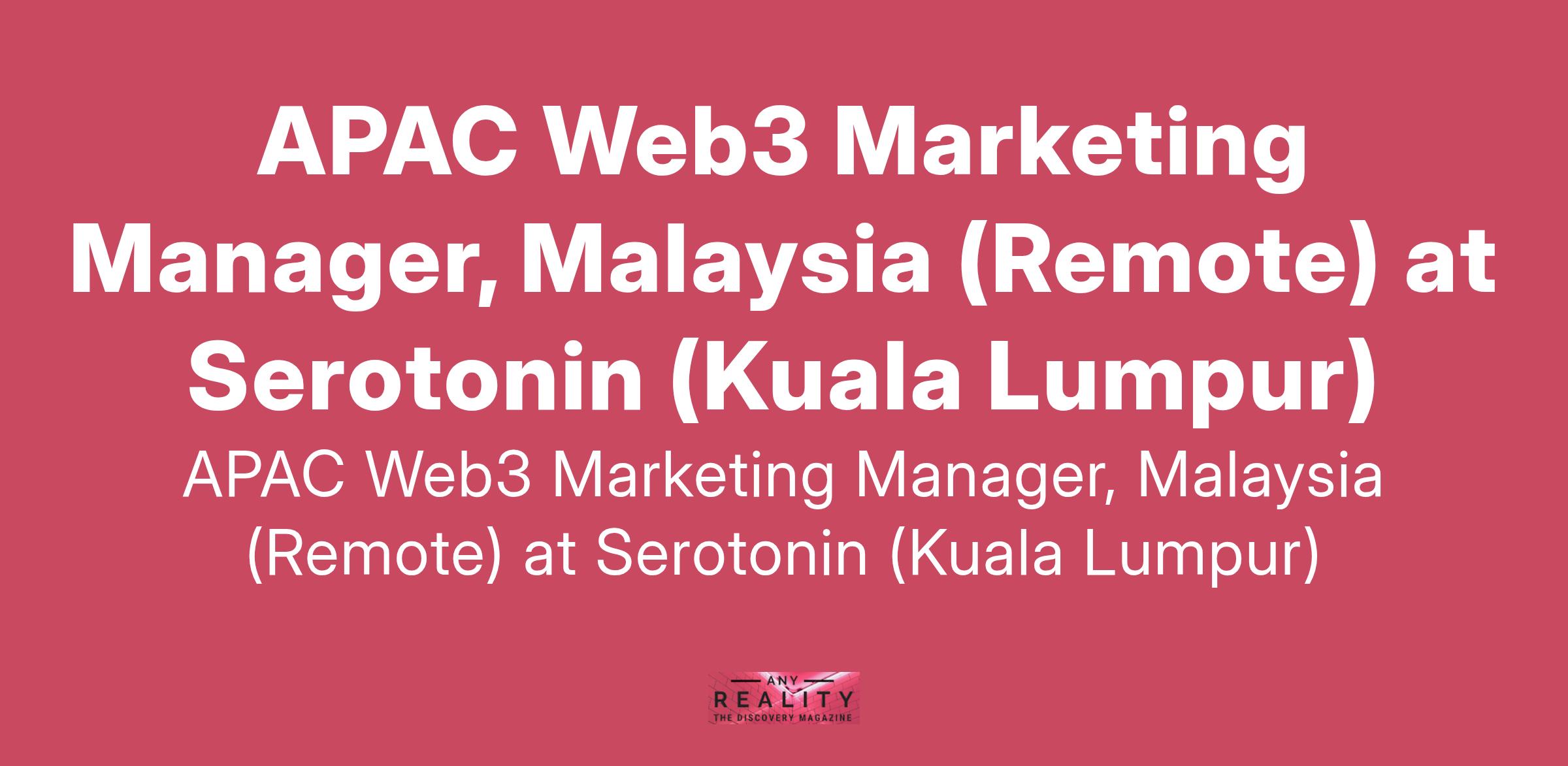 APAC Web3 Marketing Manager, Malaysia (Remote) at Serotonin (Kuala Lumpur)