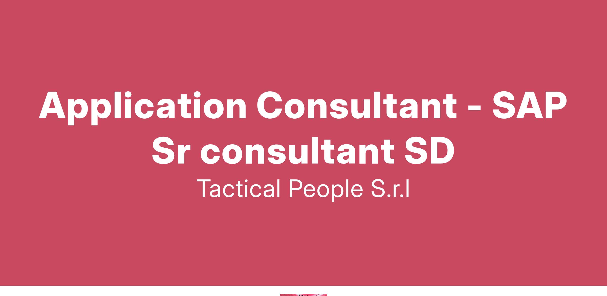 Unisciti a TACTICAL PEOPLE: Innovazione, Persone e Crescita nel Cuore della Digital Transformation Da oltre 20 anni, TACTICAL PEOPLE si posiziona come leader nel mercato ICT, guidando con passione e competenza i nostri clienti di medie e grandi dimensioni attraverso il dinamico percorso della digital transformation. La nostra mission è chiara: non solo abbracciare il cambiamento tecnologico, ma guidarlo, creando soluzioni all'avanguardia che plasmino il futuro digitale. In TACTICAL PEOPLE, crediamo fortemente nel mettere le persone al centro di ogni nostra iniziativa. Le persone sono il cuore pulsante della nostra azienda; il loro benessere, la loro crescita e il loro sviluppo sono la nostra priorità. Ci impegniamo a condividere le strategie aziendali con trasparenza e a fornire formazione e supporto a ogni livello, garantendo che ogni membro del team sia equipaggiato per eccellere e innovare. Stiamo cercando individui che condividano la nostra visione, che siano guidati dalla passione per la tecnologia e che desiderino essere protagonisti nella costruzione di un futuro digitale più luminoso. Se sei pronto a far parte di una squadra che valorizza il talento, incoraggia la crescita personale e professionale e lavora in prima linea nel settore della digital transformation, TACTICAL PEOPLE è il posto giusto per te. Posizione Aperta: Application Consultant - SAP Senior consultant SD Sede: Remoto Descrizione del Ruolo: Il candidato ideale Minimo 5 di esperienza tecnica approfondita diretta su SAP SD. Cosa offriamo: Inserimento immediato in una Tech Community giovane e dinamica. TACTICAL LEARNING HUB, con corsi di aggiornamento e formazione. Il presente annuncio è rivolto ad entrambi i sessi, ai sensi delle leggi 903/77 e 125/91, e a persone di tutte le età e tutte le nazionalità, ai sensi dei decreti legislativi 215/03 e 216/03. I curricula dovranno pervenire completi di dicitura che autorizza il trattamento dei propri dati: “Si autorizza al trattamento dei dati personali ai sensi del D. Lgs. 196/2003.