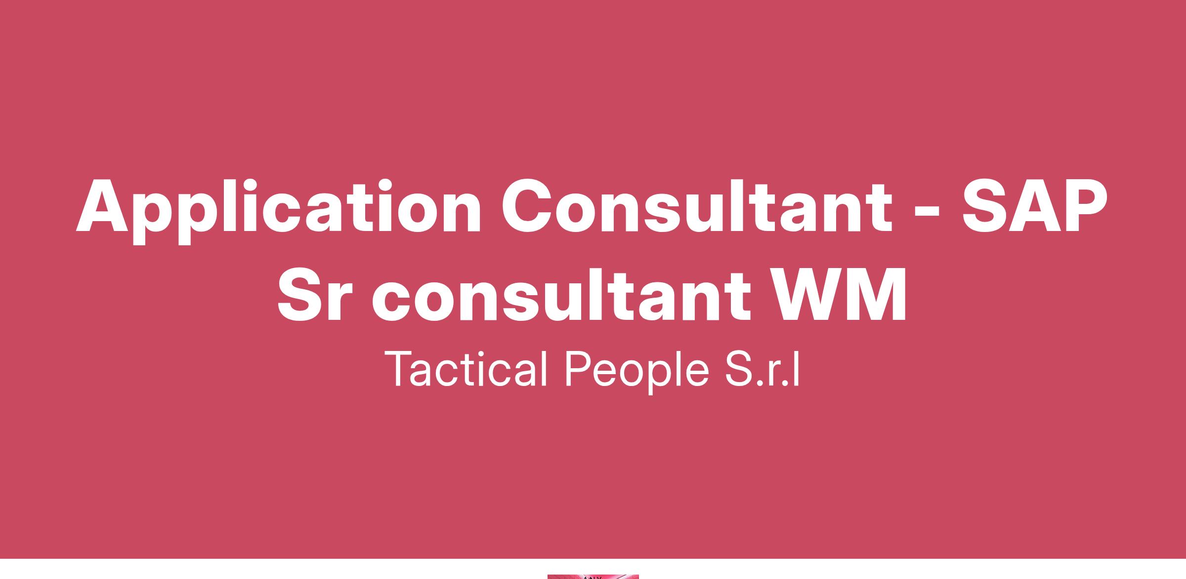 Unisciti a TACTICAL PEOPLE: Innovazione, Persone e Crescita nel Cuore della Digital Transformation Da oltre 20 anni, TACTICAL PEOPLE si posiziona come leader nel mercato ICT, guidando con passione e competenza i nostri clienti di medie e grandi dimensioni attraverso il dinamico percorso della digital transformation. La nostra mission è chiara: non solo abbracciare il cambiamento tecnologico, ma guidarlo, creando soluzioni all'avanguardia che plasmino il futuro digitale. In TACTICAL PEOPLE, crediamo fortemente nel mettere le persone al centro di ogni nostra iniziativa. Le persone sono il cuore pulsante della nostra azienda; il loro benessere, la loro crescita e il loro sviluppo sono la nostra priorità. Ci impegniamo a condividere le strategie aziendali con trasparenza e a fornire formazione e supporto a ogni livello, garantendo che ogni membro del team sia equipaggiato per eccellere e innovare. Stiamo cercando individui che condividano la nostra visione, che siano guidati dalla passione per la tecnologia e che desiderino essere protagonisti nella costruzione di un futuro digitale più luminoso. Se sei pronto a far parte di una squadra che valorizza il talento, incoraggia la crescita personale e professionale e lavora in prima linea nel settore della digital transformation, TACTICAL PEOPLE è il posto giusto per te. Posizione Aperta: Application Consultant - SAP Senior consultant WM Sede: Remoto Descrizione del ruolo: Il candidato ideale deve avere minimo 5 anni di esperienza nel ruolo di consulente SAP WM. Cosa offriamo: Inserimento immediato in una Tech Community giovane e dinamica. TACTICAL LEARNING HUB, con corsi di aggiornamento e formazione. Il presente annuncio è rivolto ad entrambi i sessi, ai sensi delle leggi 903/77 e 125/91, e a persone di tutte le età e tutte le nazionalità, ai sensi dei decreti legislativi 215/03 e 216/03. I curricula dovranno pervenire completi di dicitura che autorizza il trattamento dei propri dati: “Si autorizza al trattamento dei dati personali ai sensi del D. Lgs. 196/2003.