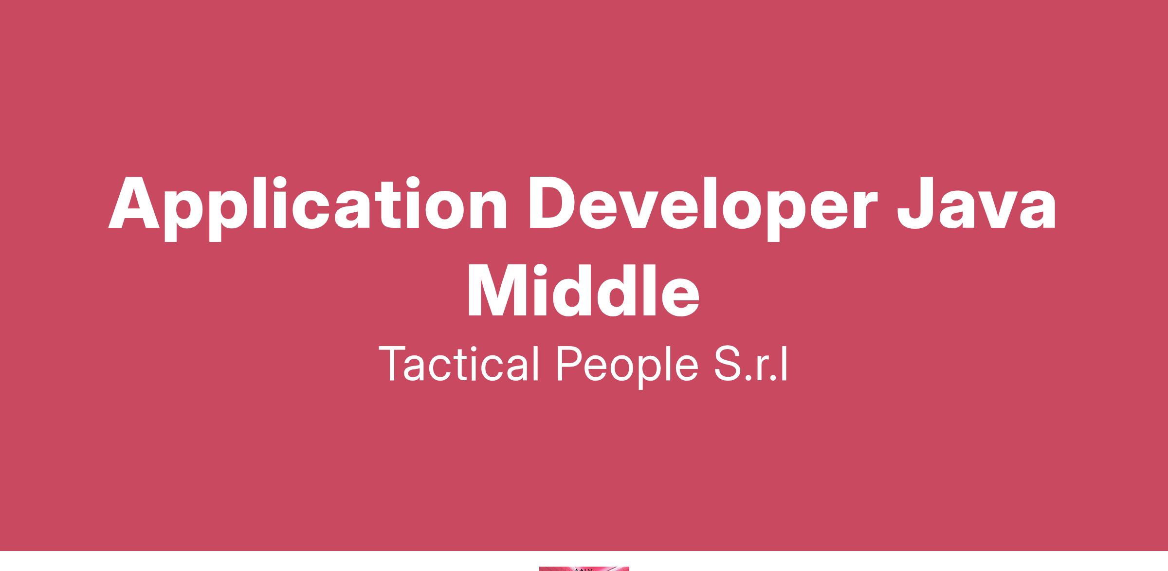 Unisciti a TACTICAL PEOPLE: Innovazione, Persone e Crescita nel Cuore della Digital Transformation Da oltre 20 anni, TACTICAL PEOPLE si posiziona come leader nel mercato ICT, guidando con passione e competenza i nostri clienti di medie e grandi dimensioni attraverso il dinamico percorso della digital transformation. La nostra mission è chiara: non solo abbracciare il cambiamento tecnologico, ma guidarlo, creando soluzioni all'avanguardia che plasmino il futuro digitale. In TACTICAL PEOPLE, crediamo fortemente nel mettere le persone al centro di ogni nostra iniziativa. Le persone sono il cuore pulsante della nostra azienda; il loro benessere, la loro crescita e il loro sviluppo sono la nostra priorità. Ci impegniamo a condividere le strategie aziendali con trasparenza e a fornire formazione e supporto a ogni livello, garantendo che ogni membro del team sia equipaggiato per eccellere e innovare. Stiamo cercando individui che condividano la nostra visione, che siano guidati dalla passione per la tecnologia e che desiderino essere protagonisti nella costruzione di un futuro digitale più luminoso. Se sei pronto a far parte di una squadra che valorizza il talento, incoraggia la crescita personale e professionale e lavora in prima linea nel settore della digital transformation, TACTICAL PEOPLE è il posto giusto per te. Posizione Aperta: Application Developer Java Middle Sede: Napoli Descrizione del ruolo: Il candidato ideale deve avere 1-2 anni di esperienza nel mondo del testing software, preferibilmente in ambito SAP. Cosa offriamo: Inserimento immediato in una Tech Community giovane e dinamica. TACTICAL LEARNING HUB, con corsi di aggiornamento e formazione. Il presente annuncio è rivolto ad entrambi i sessi, ai sensi delle leggi 903/77 e 125/91, e a persone di tutte le età e tutte le nazionalità, ai sensi dei decreti legislativi 215/03 e 216/03. I curricula dovranno pervenire completi di dicitura che autorizza il trattamento dei propri dati: “Si autorizza al trattamento dei dati personali ai sensi del D. Lgs. 196/2003.