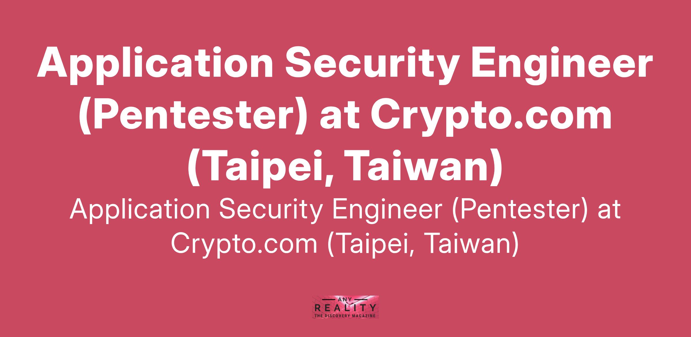 Application Security Engineer (Pentester) at Crypto.com (Taipei, Taiwan)