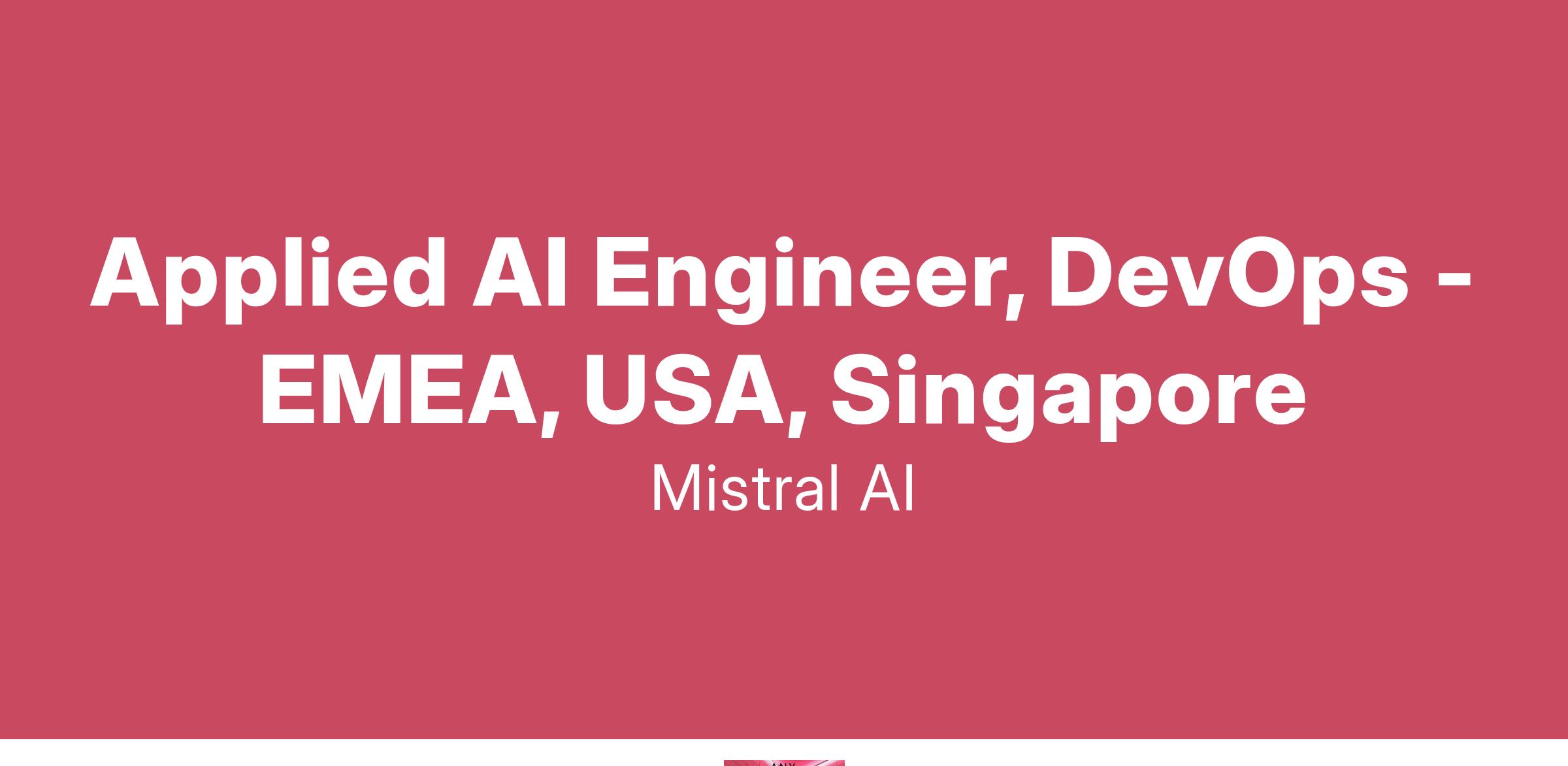 Mistral AI is seeking an Applied AI Engineer focused on DevOps to facilitate the adoption of its products among customers and collaborate with them to address complex technical challenges.Applied AI Engineers, DevOps at Mistral AI work directly with customers to quickly understand their greatest challenges and design and implement AI solutions. In this role, you’ll apply your problem-solving ability, creativity, and technical skills to help organizations use AI to drive real impact in the world. You’ll have the opportunity to gain rare insight into and contribute to some of the most important industries and institutions globally!Applied AI Engineers, DevOps responsibilities look similar to those of a startup CTO: you’ll work in small teams and own end-to-end execution of high-stakes projects. A day might span discussing architecture with fellow engineers, wrangling massive-scale data, coding a custom web app, speaking with customer executives, or establishing a strategy for the Applied Engineering team.Key ResponsibilitiesYou’ll be responsible for onboarding customers on our products, providing guidance on deployment and integration, and ensuring the best production setup from the low-level GPU stack up to infrastructure, back-end and front-end interfaces.You’ll work on deploying state-of-the-art AI applications from consumer products to industrial use cases, driving with our customers a crucial technological transformation.You’ll work in collaboration with our researchers, other AI engineers, and product engineers on our most complex customer projects involving deployment, scaling, and contributing to our open-source codebases for tasks such as inference and fine-tuning.You’ll be involved in pre-sales calls to understand potential clients' needs, challenges, and aspirations. You will provide technical guidance on our products and explain Mistral technologies to various stakeholders.You may be a good fit ifYou are fluent in EnglishYou hold a Bachelor's or Master's degree in Computer Science, Engineering, or a related fieldYou have 2+ years of experience in a DevOps or Site Reliability Engineering roleYou're experienced with deploying and managing AI-based products in production environmentsYou are fluent in PythonYou have experience with containerization technologies such as Docker and KubernetesYou have experience with CI/CD pipelines and automated deployment toolsYou have deep understanding of cloud platforms (AWS, Azure, GCP) and on-premises infrastructureYou are experienced with infrastructure as code (IaC) tools such as Terraform or AnsibleYou hold strong communication skills with an ability to explain complex technical concepts in simple terms to technical and non-technical audiencesIdeally you haveExperience as a Customer Engineer, Forward Deployed Engineer, Sales Engineer, Solutions Architect, or Technical Product ManagerFamiliarity with AI frameworks such as PyTorch or TensorFlowContributions to open-source projects, particularly in the space of DevOps or AIBenefits🤑 Competitive cash salary and equity🥕 Food : Daily lunch vouchers🥎 Sport : Monthly contribution to a Gympass subscription🚴 Transportation : Monthly contribution to a mobility pass🧑⚕️ Health : Full health insurance for you and your family🍼 Parental : Generous parental leave policy🌎 Visa sponsorship
