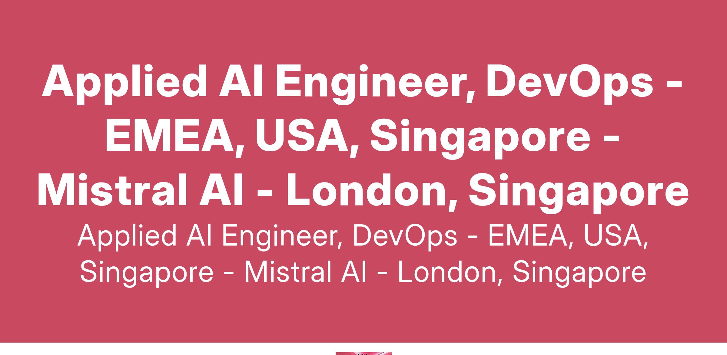 Applied AI Engineers, DevOps at Mistral AI work directly with customers to quickly understand their greatest challenges and design and implement AI solutions. In this role, you’ll apply your problem-solving ability, creativity, and technical skills to help organizations use AI to drive real impact in the world. You’ll have the opportunity to gain rare insight into and contribute to some of the most important industries and institutions globally!