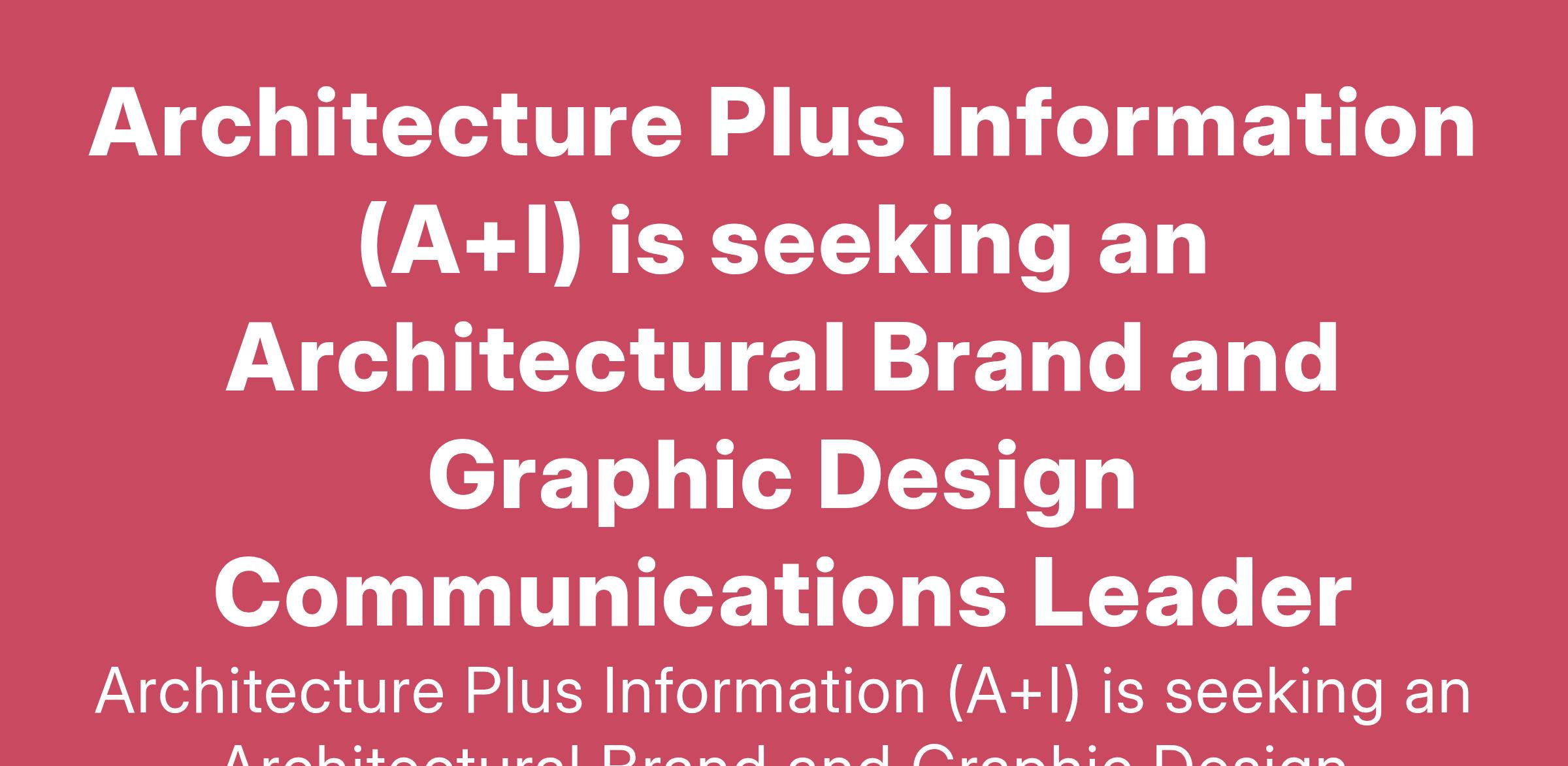 Architecture Plus Information (A+I) is seeking an Architectural Brand and Graphic Design Communications Leader