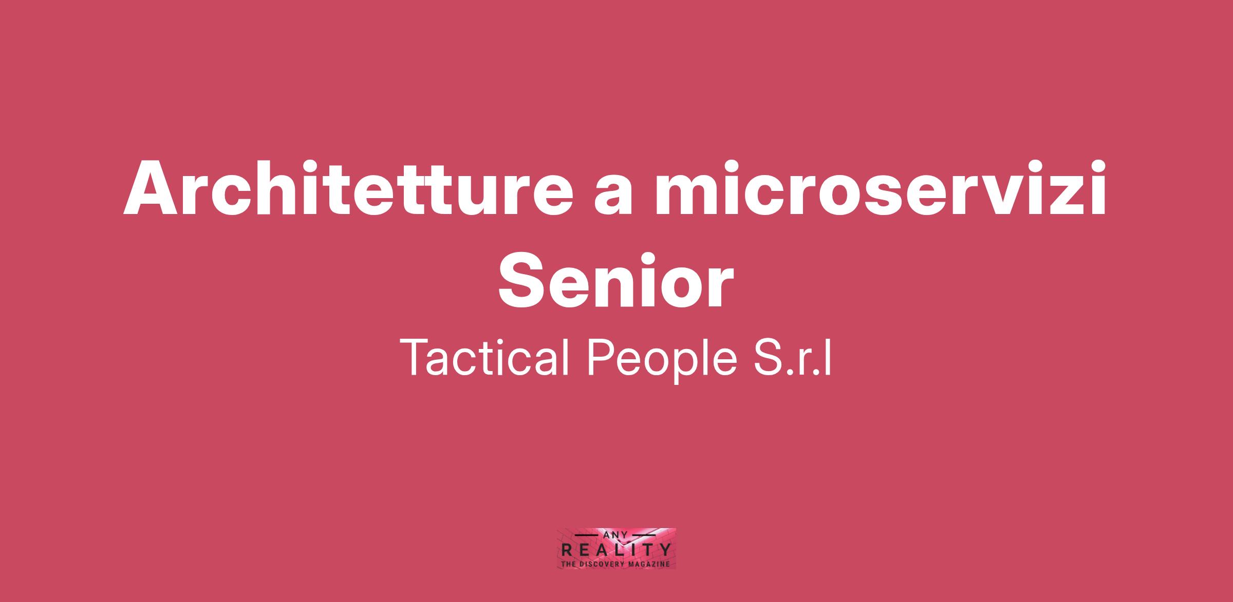 Unisciti a TACTICAL PEOPLE: Innovazione, Persone e Crescita nel Cuore della Digital Transformation Da oltre 20 anni, TACTICAL PEOPLE si posiziona come leader nel mercato ICT, guidando con passione e competenza i nostri clienti di medie e grandi dimensioni attraverso il dinamico percorso della digital transformation. La nostra mission è chiara: non solo abbracciare il cambiamento tecnologico, ma guidarlo, creando soluzioni all'avanguardia che plasmino il futuro digitale. In TACTICAL PEOPLE, crediamo fortemente nel mettere le persone al centro di ogni nostra iniziativa. Le persone sono il cuore pulsante della nostra azienda; il loro benessere, la loro crescita e il loro sviluppo sono la nostra priorità. Ci impegniamo a condividere le strategie aziendali con trasparenza e a fornire formazione e supporto a ogni livello, garantendo che ogni membro del team sia equipaggiato per eccellere e innovare. Stiamo cercando individui che condividano la nostra visione, che siano guidati dalla passione per la tecnologia e che desiderino essere protagonisti nella costruzione di un futuro digitale più luminoso. Se sei pronto a far parte di una squadra che valorizza il talento, incoraggia la crescita personale e professionale e lavora in prima linea nel settore della digital transformation, TACTICAL PEOPLE è il posto giusto per te. Posizione Aperta: Architetture a microservizi Senior Sede: Torino Descrizione del Ruolo: Il candidato ideale deve avere esperienza consolidata minimo 8-10 anni nella progettazione di architetture a microservizi. Cosa offriamo: Inserimento immediato in una Tech Community giovane e dinamica. TACTICAL LEARNING HUB, con corsi di aggiornamento e formazione. Il presente annuncio è rivolto ad entrambi i sessi, ai sensi delle leggi 903/77 e 125/91, e a persone di tutte le età e tutte le nazionalità, ai sensi dei decreti legislativi 215/03 e 216/03. I curricula dovranno pervenire completi di dicitura che autorizza il trattamento dei propri dati: “Si autorizza al trattamento dei dati personali ai sensi del D. Lgs. 196/2003.