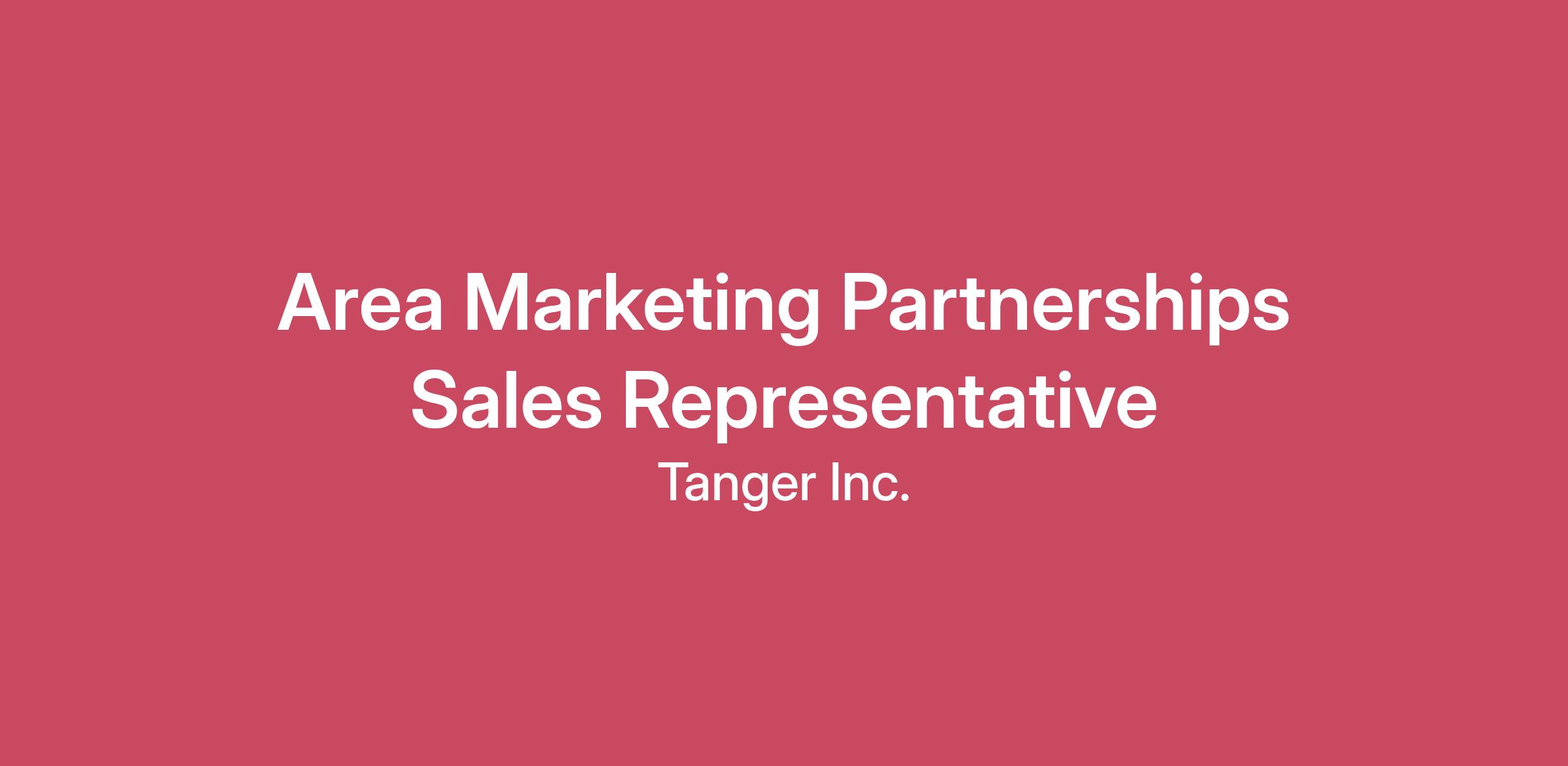About the CompanyAt Tanger, our mission is to create shopping destinations that entertain, inspire, and bring our communities together. Guided by our vision to lead the evolution of shopping, we’ve spent over four decades innovating the retail experience as a premier owner and operator of outlet and open-air centers.We live our values every day: we lead with integrity, foster inclusion, and embrace innovation to drive meaningful change. These principles come to life through our actions—we build trust, challenge the status quo, win together, and continuously push boundaries to deliver exceptional value and experiences to make it happen.Tanger team members are our most important asset, and we’re proud to offer an environment where everyone is welcomed, respected, heard, supported, and able to thrive. Our emphasis on relationships, employee growth, and exciting career opportunities sets us apart. And our spirit of innovation, expertise, and relentless pursuit of excellence brings us together.About the RoleIn our continued mission to create shopping destinations that entertain, inspire, and bring communities together, Tanger is seeking a Area Marketing Partnerships Sales RepresentativeThis role offers the opportunity to work both independently and collaboratively,supported by a flexible, Teams-driven workplace designed to empower connection, innovation, and impact across geographies.About the Tanger Perks:Competitive salaryGenerous Suite of Medical, Dental, and Vision Benefits401(k) matchPaid PTO and HolidaysPaid Volunteer HoursTeam Member Paid Leave ProgramsTuition ReimbursementWellness IncentivesGroup Life and Disability InsuranceVoluntary BenefitsTeam Member DiscountsAnd more…How can you contribute to what we do?ESSENTIAL JOB DUTIES AND RESPONSIBILITIES: Serve as the primary Business Development representative for the assigned group of centers accountable for prospecting, canvassing, and closing media, sponsorship, and non-transactional revenue deals in alignment with annual revenue goals established by the Regional Manager, Marketing Partnerships, while collaborating closely with the Regional Manager to ensure consistency with broader initiatives and cross-property opportunities.Achieve or exceed assigned revenue goals for each location within the area.Analyze sales data to inform decision-making and adjust strategies as needed.Work directly with brands, agencies, and local businesses to deliver customized solutions to leverage the unique assets of each property.Work cohesively with each center management team to identify, create, and sell revenue opportunities through strategic positioning of mall assets and programming.Flawlessly execute all national, regional, and local Marketing Partnership programs.Monitor and maintain budget, with ownership fluency in variances to adjust plan and budget in response to real time business climate. Complete monthly financial forecasts managing real time revenue and expense positions, providing frequent updates to GM and Regional Managers.Maintain a robust pipeline of prospects and regularly update CRM system with activity and progressDevelop positive working relationships with area brands and media buyers. Establish active involvement in area organizations that would benefit center’s revenue. objectives.Manage the local sales process from beginning to end, including establishing a pipeline, refining sales targets and pitches, and cultivating relationships with brand‐appropriate partners in pursuit of center deals.Conduct property tours and presentations to showcase advertising opportunities and effectively communicate the benefit of Tanger through marketing and advertising solutions to clients.Significant regional travel required.Assigned properties: TBD COMPETENCIES: This list is illustrative only and not a comprehensive listing of all functions and tasks performed by incumbents of this class.Demonstrates the ability to successfully execute the full sales cycle—including prospecting, presenting, negotiating, closing, and post‑sale support—across a defined group of properties.Is able to consistently achieve revenue goals and shows a proven track record of delivering successful sales outcomes in business‑to‑business environments.Ability to deliver compelling, well‑structured sales presentations tailored to client needs.Ability to communicate complex property and media offerings clearly and persuasively, translating features into measurable business value for partners.Effectively uses CRM platforms, prospecting tools, market data systems, and sales enablement resources to manage pipelines, prepare proposals, and increase close rates.Can use data and insights to identify high‑potential prospects and inform sales strategies.Ability to identify new potential partnerships to increase revenue opportunities.Must be a strategic thinker that can execute and drive business results.Strong understanding of sales processes, including pipeline management and negotiation techniques.Ability to analyze the impact of sponsors, partnerships and/or media involvement for center promotions.Ability to read, write, and speak effectively in English before groups such as customers, retailers, employeesAbility to multi‐task in a high‐volume settingAbility to work independently and fully execute assigned projectsAbility to work flexible schedule to accommodate business needs, including holidaysAbility to demonstrate a high level of Tanger’s Core Values:InnovationIntegrityInclusionREQUIRED EDUCATION AND EXPERIENCE: College degree in business or sales with 2-3 years experience in sales or strategic marketing or equivalent combination of education and work experience2-3 years previous experience in sponsorship, event management, and budgeting in a sales environment3-5 years successful track record in a B2B sales environmentPREFERRED EDUCATION AND EXPERIENCE:3-5 years in Advertising sales in OOH or VenuesTRAVEL: This position requires up to 50% travel.