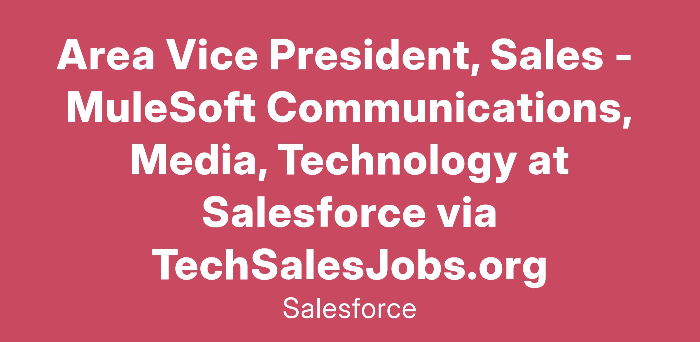The Area Vice President (AVP), Sales - Communications, Media, Technology (CMT) will lead, drive, and grow CMT sales for MuleSoft across North America. This executive will assume leadership of a growing sales organization, including Regional Vice Presidents and Account Executives.