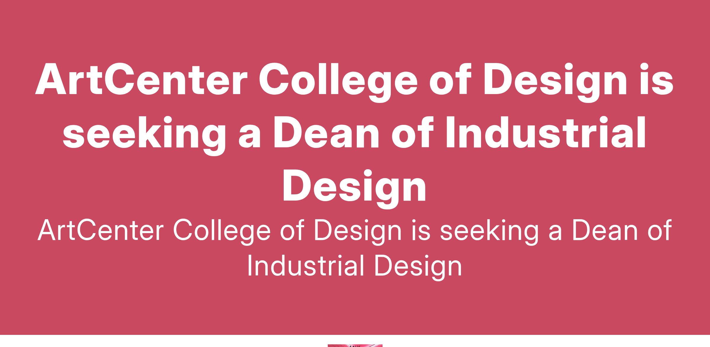 ArtCenter College of Design is seeking a Dean of Industrial Design