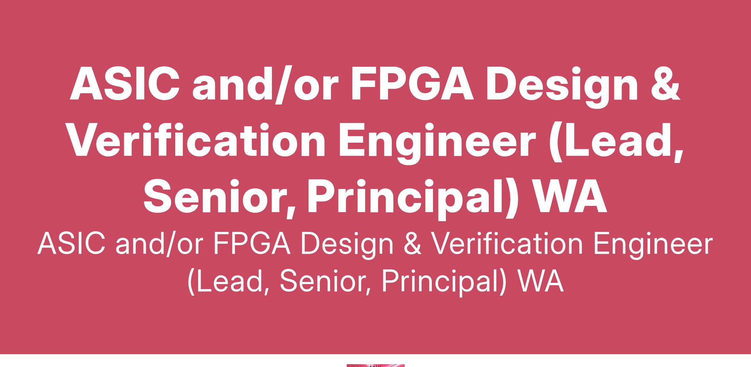 ASIC and/or FPGA Design & Verification Engineer (Lead, Senior, Principal) WA