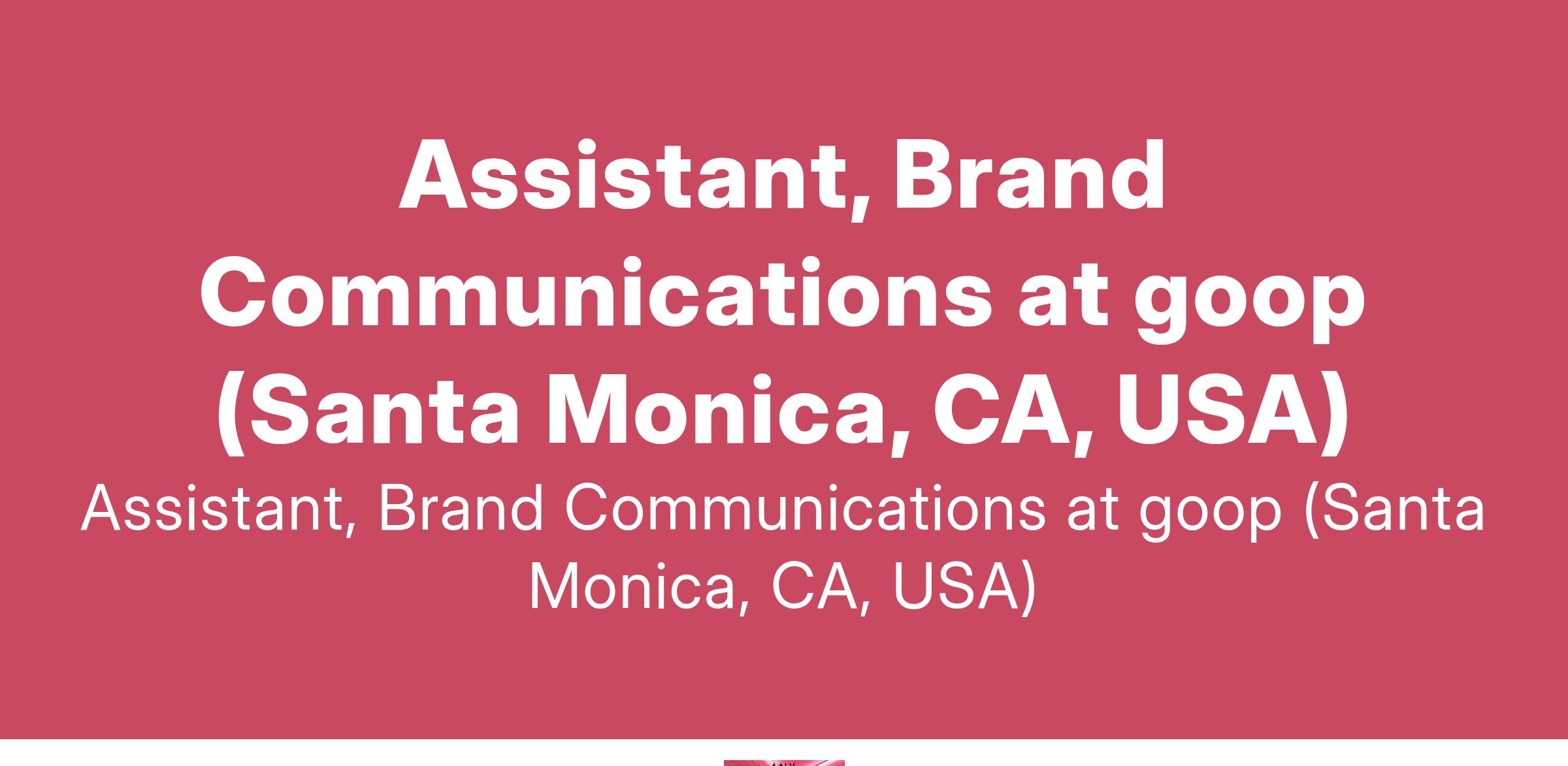 Assistant, Brand Communications at goop (Santa Monica, CA, USA)