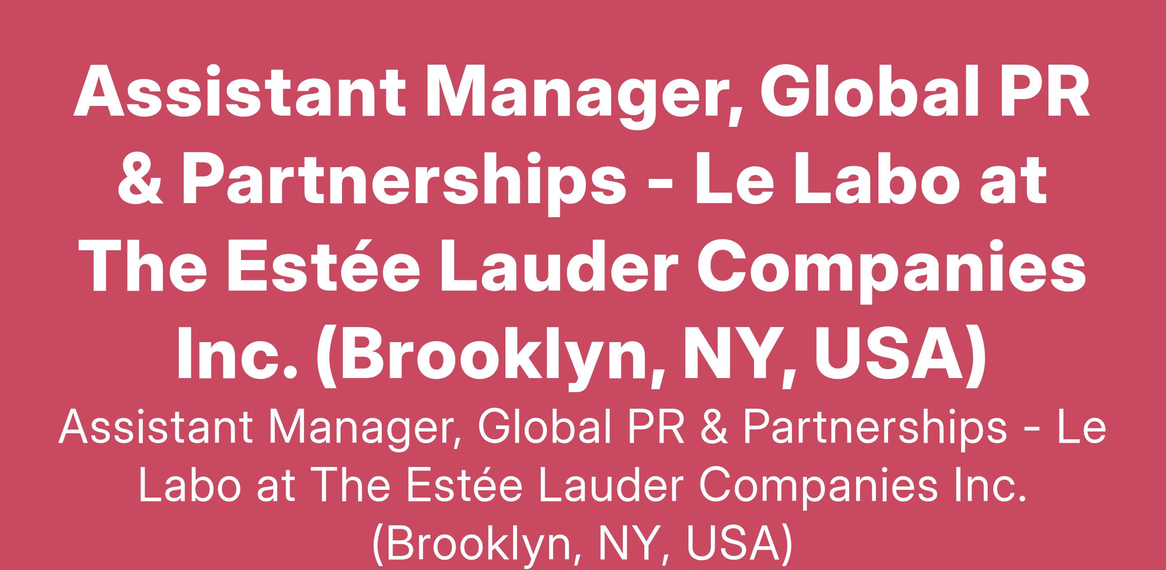 Assistant Manager, Global PR & Partnerships - Le Labo at The Estée Lauder Companies Inc. (Brooklyn, NY, USA)