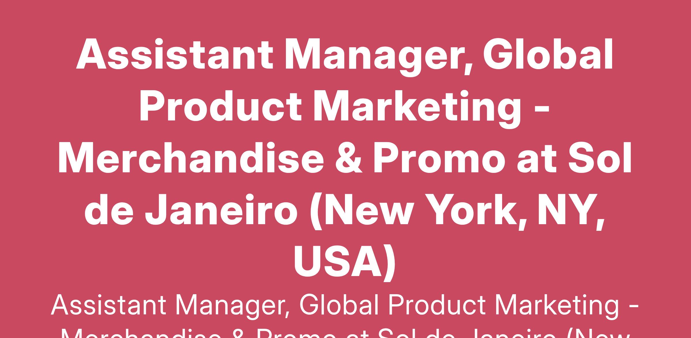 Assistant Manager, Global Product Marketing - Merchandise & Promo at Sol de Janeiro (New York, NY, USA)