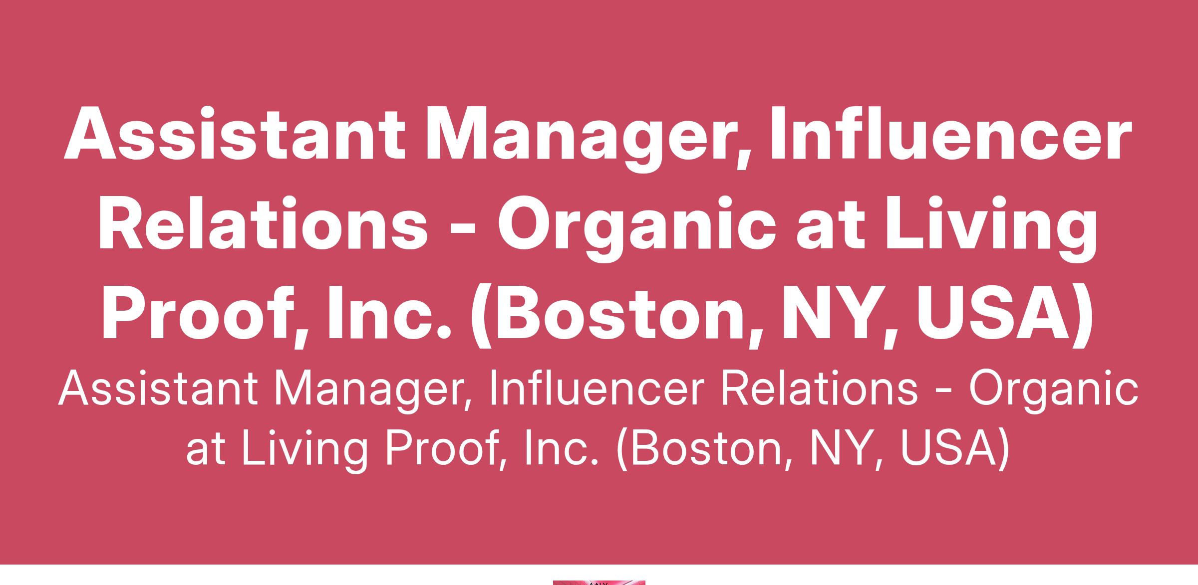 Assistant Manager, Influencer Relations - Organic at Living Proof, Inc. (Boston, NY, USA)