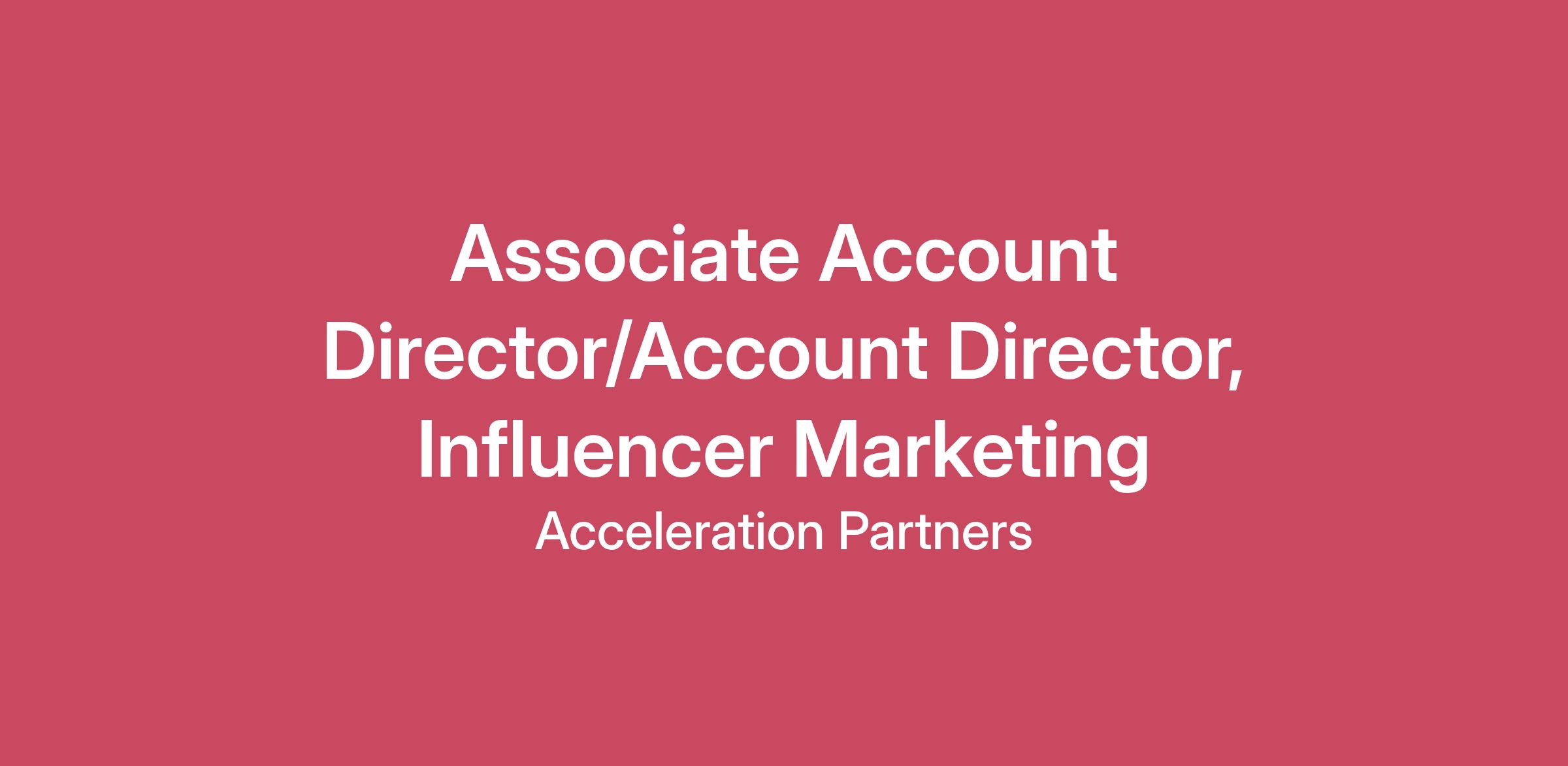 Associate Account Director/Account Director, Influencer Marketing LOCATION: The Associate Account Direct/Account Director, Influencer Marketing position is a remote, work from home position, as are all positions at Acceleration Partners (a structure central to our culture and our vision to change the work/life paradigm).Some travel is required for client meetings or other internal meetings, conferences, etc. THE ROLE: As the partner marketing landscape continues to evolve, various channels and tactics are coming together in exciting ways, and Acceleration Partners is leading the charge. We are seeking an experienced senior level digital marketing professional with leadership experience(s) to autonomously manage cross-regional teams for our influencer marketing practice, serving as a high-level client facing liaison, often acting as a point of escalation for the AP and client teams. The successful candidate will have strong experience in developing and managing successful, KPI-driven influencer marketing campaigns for consumer products and/or services companies. They will have working knowledge of the overall partner marketing landscape, including affiliate, and the ability to both direct comprehensive strategy as well as capably lead, manage, and hold teams accountable. This person will be responsible for ensuring a high level of client service is being delivered to drive client happiness, retention, and growth KPIs. This person will also be responsible for team happiness, coaching and developing direct reports on client service and communication best practices, team retention, staffing and resourcing. Another key focus will be monitoring for wider trends and ensuring synergies and alignment, constantly looking for areas to improve processes and establish best practices. At Acceleration Partners, we have three core values that we apply to everything we do: Own It, Embrace Relationships, and Excel & Improve. The ideal candidate will have a track record that aligns to all of these values. This person will have a history of owning it, having met and exceeded performance expectations by overcoming obstacles and turning them into opportunities. This person will have a demonstrated track record of embracing relationships, leveraging communication and interpersonal skills to build relationships based on trust and genuine partnership. And this person will have demonstrated the desire to excel & improve by constantly looking for areas of improvements and innovating the approach to create efficiencies and maximize effectiveness. TOP 5 JOB RESPONSIBILITIES: PORTFOLIO GROWTH (STRATEGY, EXECUTION, PERFORMANCE AND EXPANSION) - Has the ability to see the big picture by thinking conceptually, imaginatively, and systematically. Provide high-level strategic guidance and partnership to teams to ensure program goals are met and program risk areas are mitigated proactively. Works with the team to innovate new strategy, tactics and efficiencies so client’s objective are met and ensure client success. Assists team in identifying opportunities for scope of work expansions. Leverages curiosity and effective questioning to identify expansion opportunities internally with team and externally with client contacts. Assists in development of expansion proposals and approach with pitching to client stakeholders. Strong focus on achieving YoY growth KPIs. LEAD MANAGE AND HOLD YOUR TEAM ACCOUNTABLE - Oversee account teams, managing and leading team members and supervising high-level account activities. Assist in hiring and successfully develops their team through mentoring, coaching, identifying training needs and providing proactive and timely feedback. Success of developing teams is proven through a track record of growing team capabilities, elevating teams and motivating A players while managing out poor performers. Monitors team happiness and retention metrics to spot macro and micro level trends and red flags. Works with key stakeholders on resolution plans. Is considerate of regional nuances in regards to navigating people issues. SUPERIOR CLIENT SERVICE (COMMUNICATION, SATISFACTION, AND RETENTION) - Builds strong relationships with client contacts and establishes and strengthens relationships at multiple levels within the client’s organization, including C-level contacts (CEO, CMO, VP of Marketing, etc.). Provides superior client service, acts as a point of contact, managing 95% of client escalations and escalates issues as appropriate. Works with teams to ensure client develops trust in our team by overseeing client outputs and communication are delivered in the AP way which is reflected in client retention, and a net promoter score of 8+. RESOURCE ALLOCATION AND PROFITABILITY - Assist with managing monthly utilization rate, assist with staffing plans and resources for sales pipeline. Ensures accounts are profitable, within scope and works with the team to adjust scopes and finds new opportunities to increase portfolio revenue which is reflected in very high retention rates. INTERNAL RESPONSIBILITIES - Collaborate with other departments, including Marketing, Sales, and Operations to address customers’ needs and scale the business to meet long term company goals. Ensure proper information sharing with team by disseminating information in a timely manner and keeping the voice of AP. Leads process improvements, encourages efficiency, works to build value for the organization by proactively identifying and mitigating potential risks to the business. Flags and escalates key risks as needed up the chain. WHAT SUCCESS LOOKS LIKE: BY 6 MONTHS… the Associate Account Director/Account Director is overseeing day-to-day operations of multiple influencer programs across regions and account teams with little guidance from their Director. They have formed strong relationships with key client contacts and are recognized by the client as a leader and point of escalation. Influencer programs are seeing growth MoM, performa