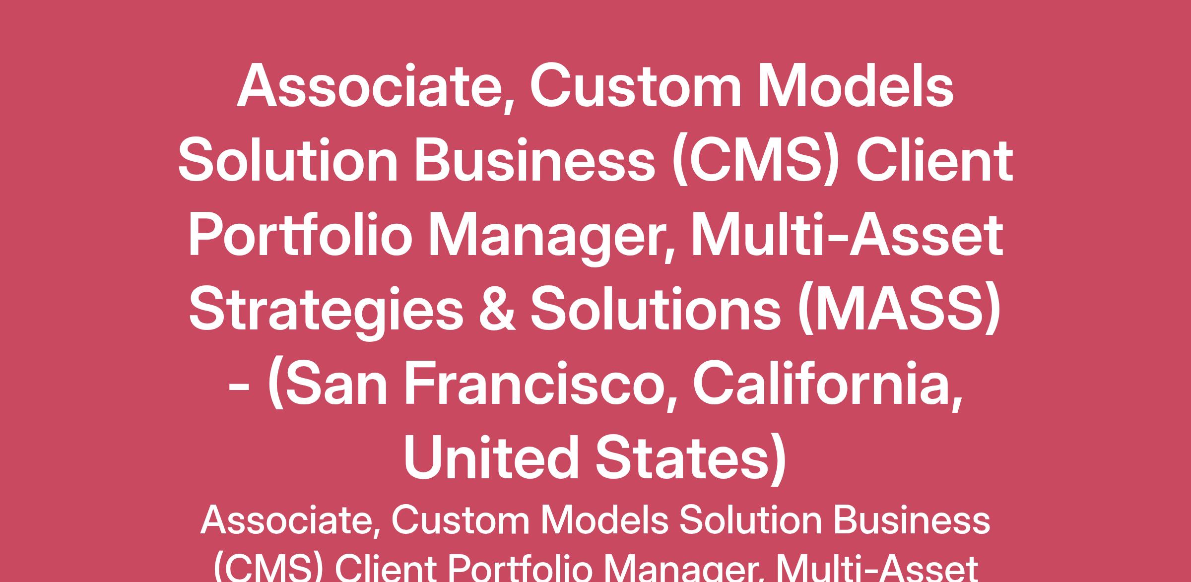 Support critical initiatives to scale the CMS business and its integration across MASS and other parts of the firm, including but not limited to client-facing market leaders, Models Infrastructure, MASS Core PM, and Aladdin Wealth Tech.