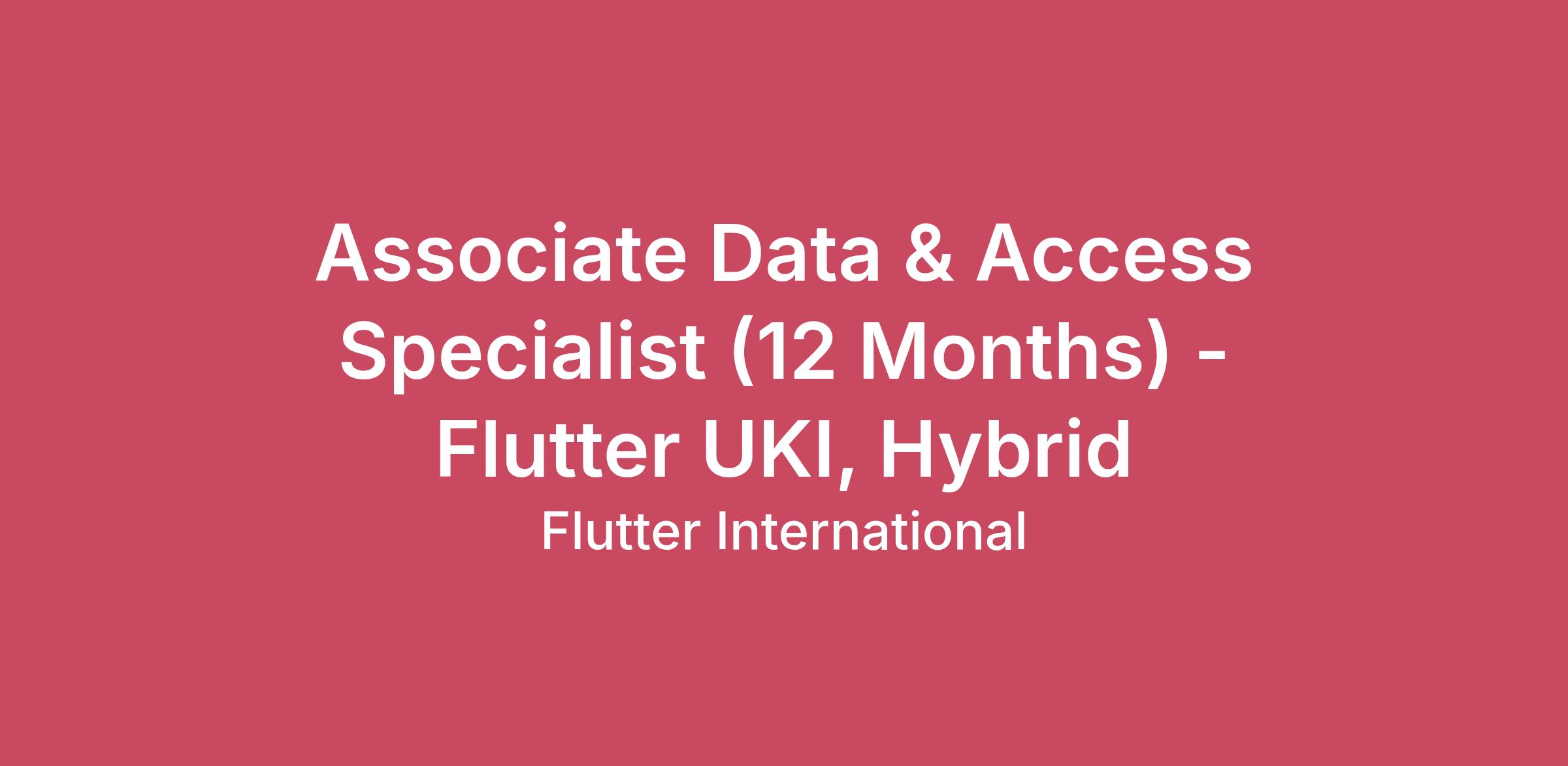 Associate Data & Access Specialist (12 Months) - Flutter UKI, Hybrid