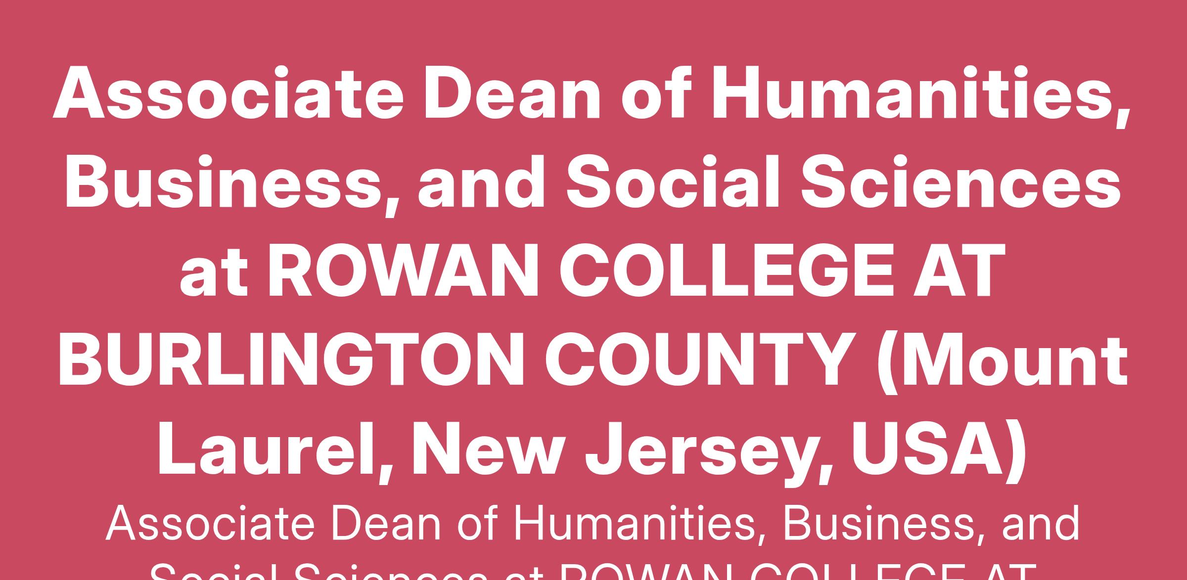 Associate Dean of Humanities, Business, and Social Sciences at ROWAN COLLEGE AT BURLINGTON COUNTY (Mount Laurel, New Jersey, USA)