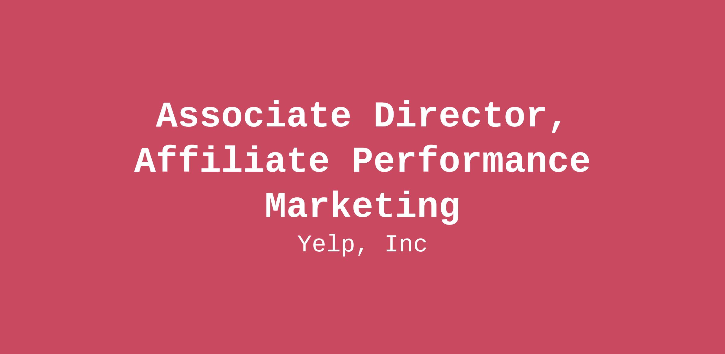 Summary Yelp’s high-impact performance marketing team is dedicated to connecting homeowners with the best local service professionals, accelerating marketplace growth through innovative lead generation strategies. Our work sits at the intersection of technology, data, and performance-driven partnerships. We’re looking for a deeply experienced and technically savvy Associate Director of Affiliate Marketing to own and scale our affiliate-driven lead generation program. You have hands-on experience working with lead gen platforms, understand their operating models, and have leveraged their capabilities to drive measurable value. You thrive in fast-paced, data-first environments and are skilled at building, optimizing, and scaling acquisition partnerships. We’d love to have you apply, even if you don’t feel you meet every single requirement in this posting. At Yelp, we’re looking for great people, not just those who simply check off all the boxes. This is a full-time remote role based in the United States. What you'll do: Lead the strategy, execution, and optimization of our affiliate marketing program to deliver high-quality home services leads at scale. Manage affiliate partnerships end-to-end—from prospecting, contracting, and onboarding to ongoing performance management—with a focus on impact and transparency. Leverage firsthand expertise with top home services lead gen platforms to inform partner selection, negotiation, and optimization. Analyze large, complex data sets to uncover trends, identify opportunities, and optimize for ROI and lead quality. Oversee technical affiliate operations, including platform tracking, attribution, and compliance. Drive continuous innovation by testing offers, landing pages, campaign tactics, and pricing models. Collaborate cross-functionally with product, marketing, analytics, and sales teams to drive holistic strategies and integrated channel optimization. Clearly communicate performance and strategic recommendations to leadership and stakeholders. Stay current with industry trends, regulatory requirements, and performance marketing best practices. What it takes to succeed: 7+ years' experience leading affiliate or partnership marketing for high-growth organizations with home services lead generation sector experience highly preferred. Direct, hands-on execution with major lead gen platforms, leveraging those relationships to scale and optimize acquisition. Strong technical proficiency with affiliate tracking and analytics platforms, including data analysis (SQL, BI dashboards, Excel). Proven ability to structure, optimize, and scale CPL/CPA-based campaigns in a dynamic, competitive environment. Demonstrated experience leading teams and collaborating cross-functionally within large organizations. Robust analytical, problem-solving, and communication skills, comfortable presenting insights to leadership.Bachelor’s degree in a quantitative or business field preferred. Nice to have: Hands-on experience with SEM (Search Engine Marketing), paid social channels, and affiliate, with a track record of optimizing and integrating learning across the broader digital marketing acquisition mix. What you'll get: Effective your first day: Full medical, vision, and dental 15 days PTO (accrual begins on date of hire and increases with 2+ years of tenure thereafter), 12 paid holidays, plus one floating holiday Up to 14 weeks of parental leave Monthly wellness subsidy Work from home reimbursement Flexible spending account 401(k) retirement savings plan Employee stock purchase plan Compensation range for this position is $180,000 - $238,000 annually. You may also be offered a bonus and benefits. Closing At Yelp, we believe that diversity is an expression of all the unique characteristics that make us human: race, age, sexual orientation, gender identity, religion, disability, and education — and those are just a few. We recognize that diverse backgrounds and perspectives strengthen our teams and our product. The foundation of our diversity efforts are closely tied to our core values, which include “Playing Well With Others” and “Authenticity.” We’re proud to be an equal opportunity employer and consider qualified applicants without regard to race, color, religion, sex, national origin, ancestry, age, genetic information, sexual orientation, gender identity, marital or family status, veteran status, medical condition or disability. Actual salary offered may vary based on multiple factors, including but not limited to, an individual's location and experience. We will consider for employment qualified candidates with arrest and conviction records, consistent with applicable law (including, for example, the San Francisco Fair Chance Ordinance for roles based in San Francisco, the Los Angeles County Fair Chance Ordinance for roles based in the unincorporated areas of Los Angeles County, and the California Fair Chance Act for roles based in California). Where required by law, a criminal background check will not be conducted until after a conditional offer of employment is made, and any evaluation of a candidate's criminal background check will be subject to an individualized assessment that takes into account the candidate's specific criminal records and the responsibilities and requirements of the particular role. We are committed to providing reasonable accommodations for individuals with disabilities in our job application process. If you need assistance or an accommodation due to a disability, you may contact us at accommodations-recruiting@yelp.com or 415-969-8488. Note: Yelp does not accept agency resumes. Please do not forward resumes to any recruiting alias or employee. Yelp is not responsible for any fees related to unsolicited resumes. US Recruiting and Applicant Privacy Notice #LI-Remote