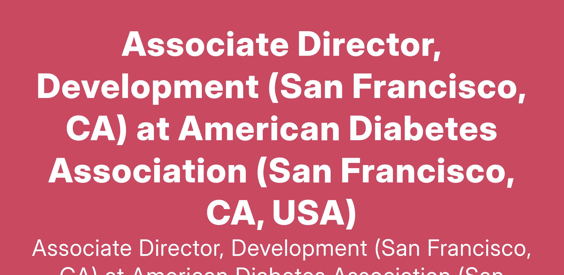 Associate Director, Development (San Francisco, CA) at American Diabetes Association (San Francisco, CA, USA)