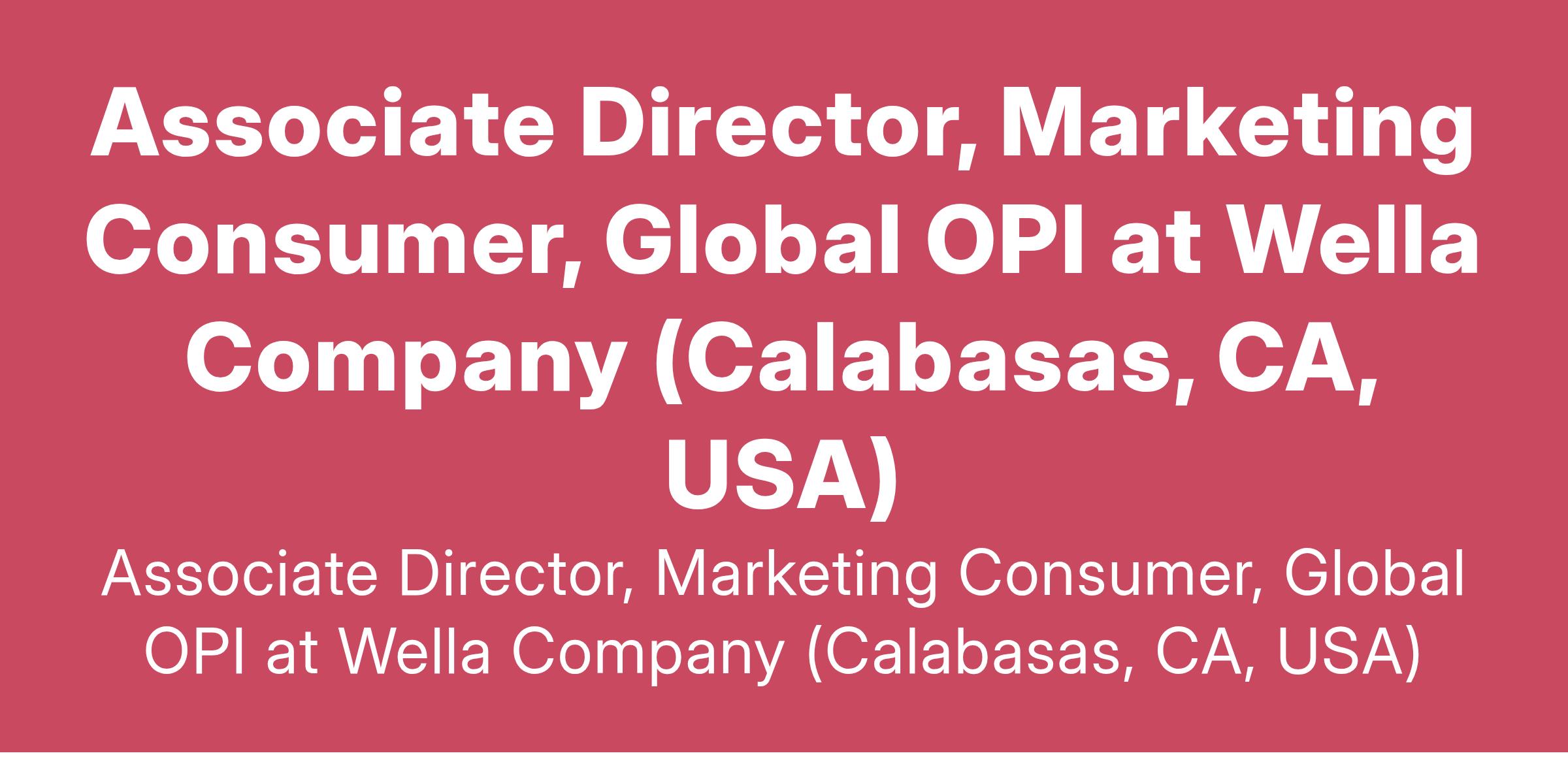 Associate Director, Marketing Consumer, Global OPI at Wella Company (Calabasas, CA, USA)