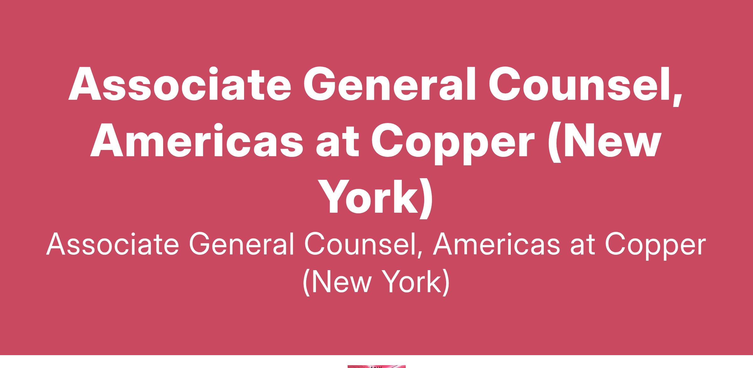 Associate General Counsel, Americas at Copper (New York)