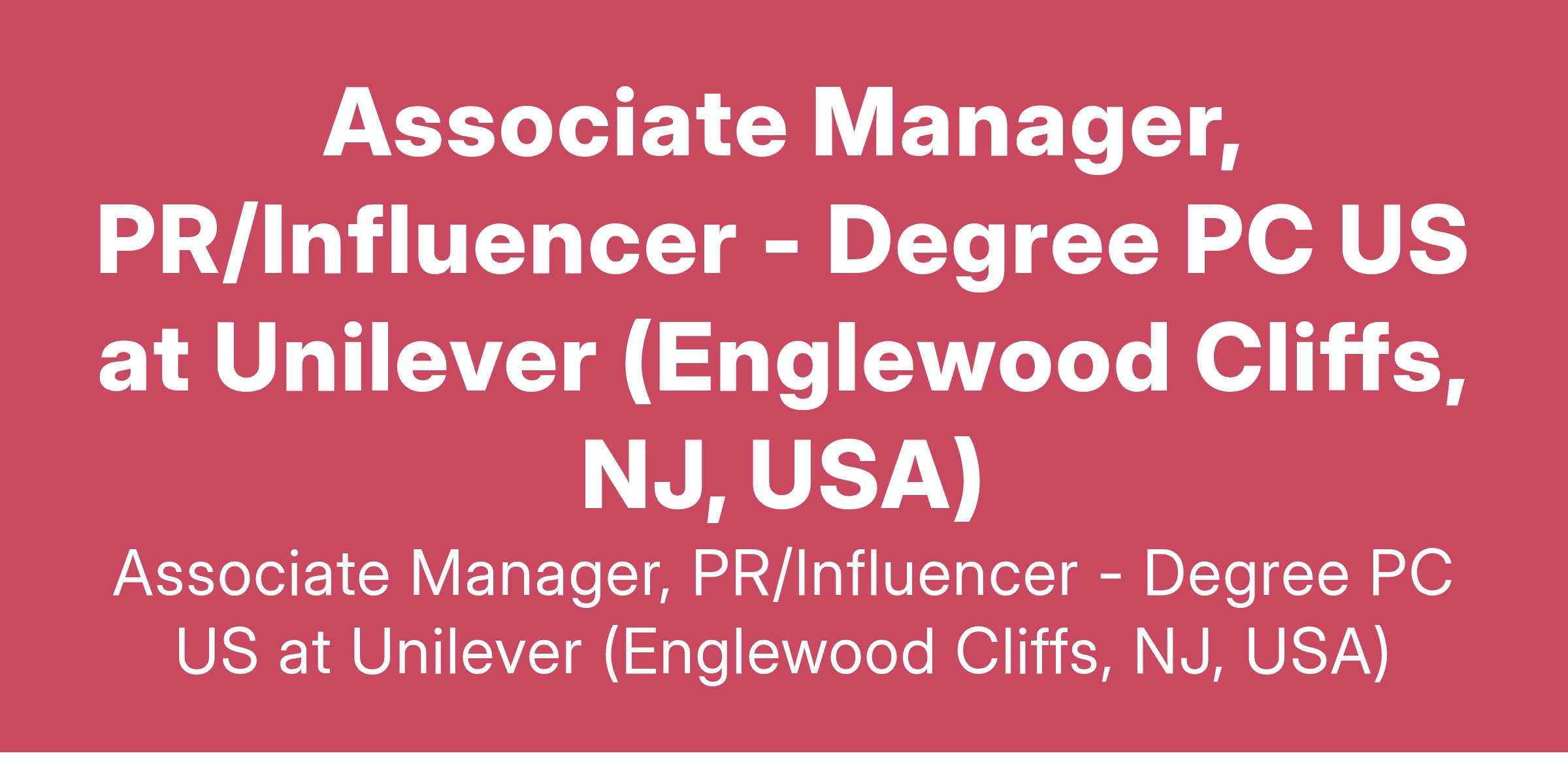 Associate Manager, PR/Influencer - Degree PC US at Unilever (Englewood Cliffs, NJ, USA)