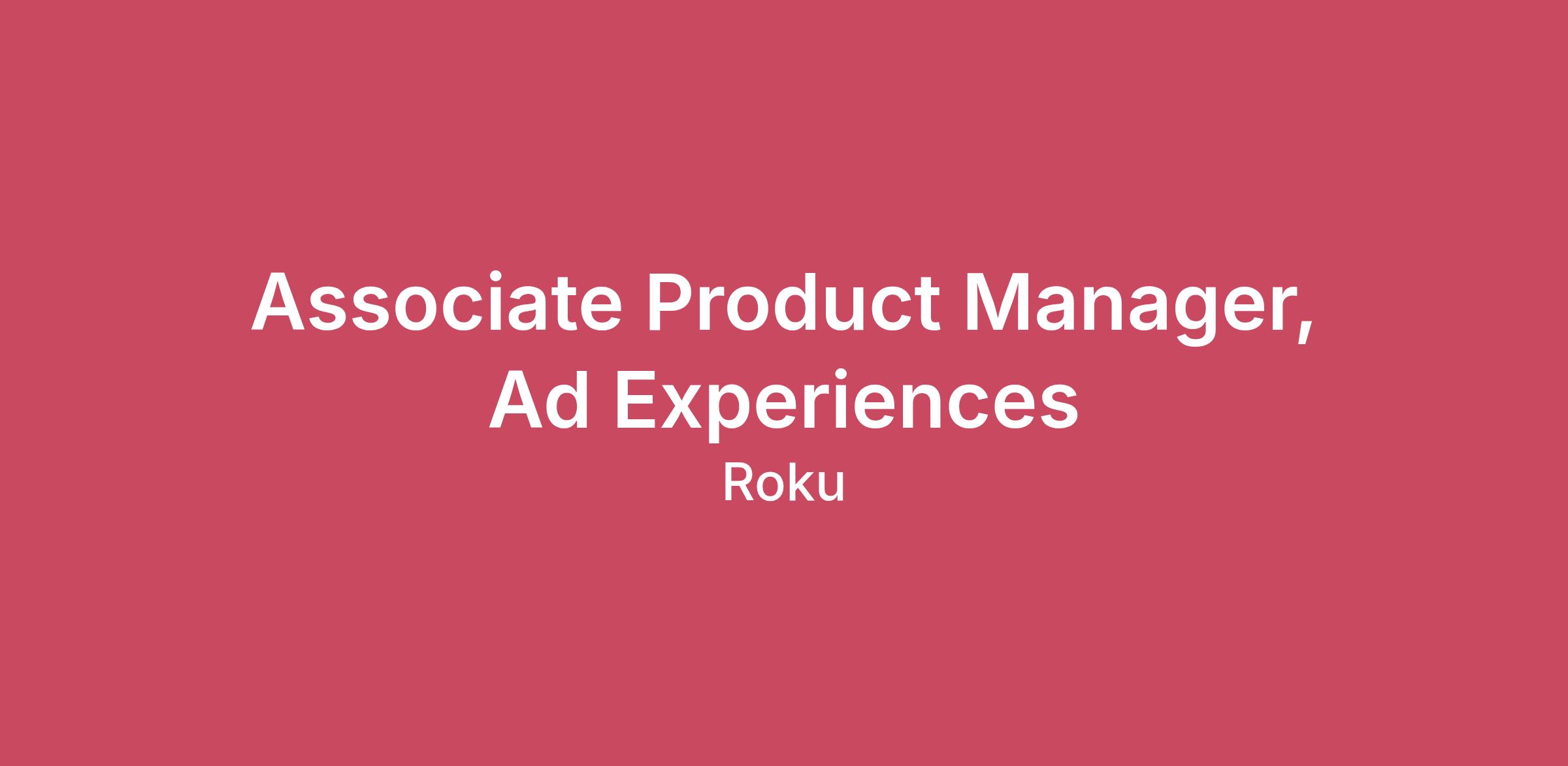 Teamwork makes the stream work. Roku is changing how the world watches TV Roku is the #1 TV streaming platform in the U.S., Canada, and Mexico, and we've set our sights on powering every television in the world. Roku pioneered streaming to the TV. Our mission is to be the TV streaming platform that connects the entire TV ecosystem. We connect consumers to the content they love, enable content publishers to build and monetize large audiences, and provide advertisers unique capabilities to engage consumers. From your first day at Roku, you'll make a valuable - and valued - contribution. We're a fast-growing public company where no one is a bystander. We offer you the opportunity to delight millions of TV streamers around the world while gaining meaningful experience across a variety of disciplines. About the role The Ad Experiences team is responsible for the intersection of revenue and viewer experience. As an APM, you will help define how users interact with advertising across our ecosystem, whether through mobile apps, web interfaces, or video platforms. You will work on the next generation of native and interactive ad formats that deliver value to advertisers while maintaining a high-quality user experience. This is an early-career role designed for high-potential individuals who are eager to learn the technical complexities of ad tech while developing a keen product sense for consumer-facing features. For California Only - The estimated annual salary for this position is between $150,000 - $200,000 annually. Compensation packages are based on factors unique to each candidate, including but not limited to skill set, certifications, and specific geographical location. This role is eligible for health insurance, equity awards, life insurance, disability benefits, parental leave, wellness benefits, and paid time off. What you'll be doing Feature Execution: Assist in the end-to-end lifecycle of new ad formats, from initial concept and wireframing to technical documentation and launch. Documentation & Specs: Author detailed PRDs (Product Requirement Documents) and user stories that translate business needs into clear, actionable requirements for Engineering and Design teams. Market Research: Conduct competitive analysis and user research to identify emerging trends in interactive advertising, shoppable content, and non-intrusive ad units. Experimentation & Analytics: Partner with Data Science to set up A/B tests. You will monitor performance metrics such as Click-Through Rate (CTR), engagement, and “ad fatigue” to iterate on existing formats. Cross-Functional Coordination: Serve as a bridge between Sales, Marketing, and Engineering. You will help gather requirements from advertisers and ensure the technical implementation meets those needs without compromising platform performance. Product Quality (QA): Lead the internal “dogfooding” and QA process for new ad units to ensure they render correctly across different devices and orientations. We're excited if you have Analytical Rigor: Ability to dive into data using SQL or visualization tools (like Tableau/Looker) to find patterns and insights that drive product decisions. Customer Empathy: A strong focus on the user; an ability to advocate for experiences that don’t feel “interruptive” or “annoying.” Technical Curiosity: While you don’t need to be a developer, you should be curious about how the digital ad stack works (e.g., how an ad is requested, served, and tracked). Communication: Strong written and verbal skills—comfortable presenting a “mini-roadmap” or a post-launch analysis to stakeholders. Experience: 0–2 years of experience in product management, digital marketing, or a technical field. Internships or projects in tech/advertising are a plus. Education: Bachelor’s degree in a technical or business-related field (Computer Science, Engineering, or similar). Success Metrics (KPIs): Engagement Rate: How often users interact with the new formats. Ad Quality Score: Maintaining a balance between high revenue and low user churn/complaints. Velocity: On-time delivery of features within the sprint cycle. Advertiser Adoption: The rate at which partners opt into using newly launched “interactive” units. #LI-SR2 Our Hybrid Work Approach Roku fosters an inclusive and collaborative environment where teams work in the office Monday through Thursday. Fridays are flexible for remote work except for employees whose roles are required to be in the office five days a week or employees who are in offices with a five day in office policy. Benefits Roku is committed to offering a diverse range of benefits as part of our compensation package to support our employees and their families. Our comprehensive benefits include global access to mental health and financial wellness support and resources. Local benefits include statutory and voluntary benefits which may include healthcare (medical, dental, and vision), life, accident, disability, commuter, and retirement options (401(k)/pension). Our employees can take time off work for vacation and other personal reasons to balance their evolving work and life needs. It's important to note that not every benefit is available in all locations or for every role. For details specific to your location, please consult with your recruiter. Accommodations Roku welcomes applicants of all backgrounds and provides reasonable accommodations and adjustments in accordance with applicable law. If you require reasonable accommodation at any point in the hiring process, please direct your inquiries to EmployeeRelations@Roku.com. The Roku Culture Roku is a great place for people who want to work in a fast-paced environment where everyone is focused on the company's success rather than their own. We try to surround ourselves with people who are great at their jobs, who are easy to work with, and who keep their egos in check. We appreciate a sense of humor. We believe a fewer number of very talented fo