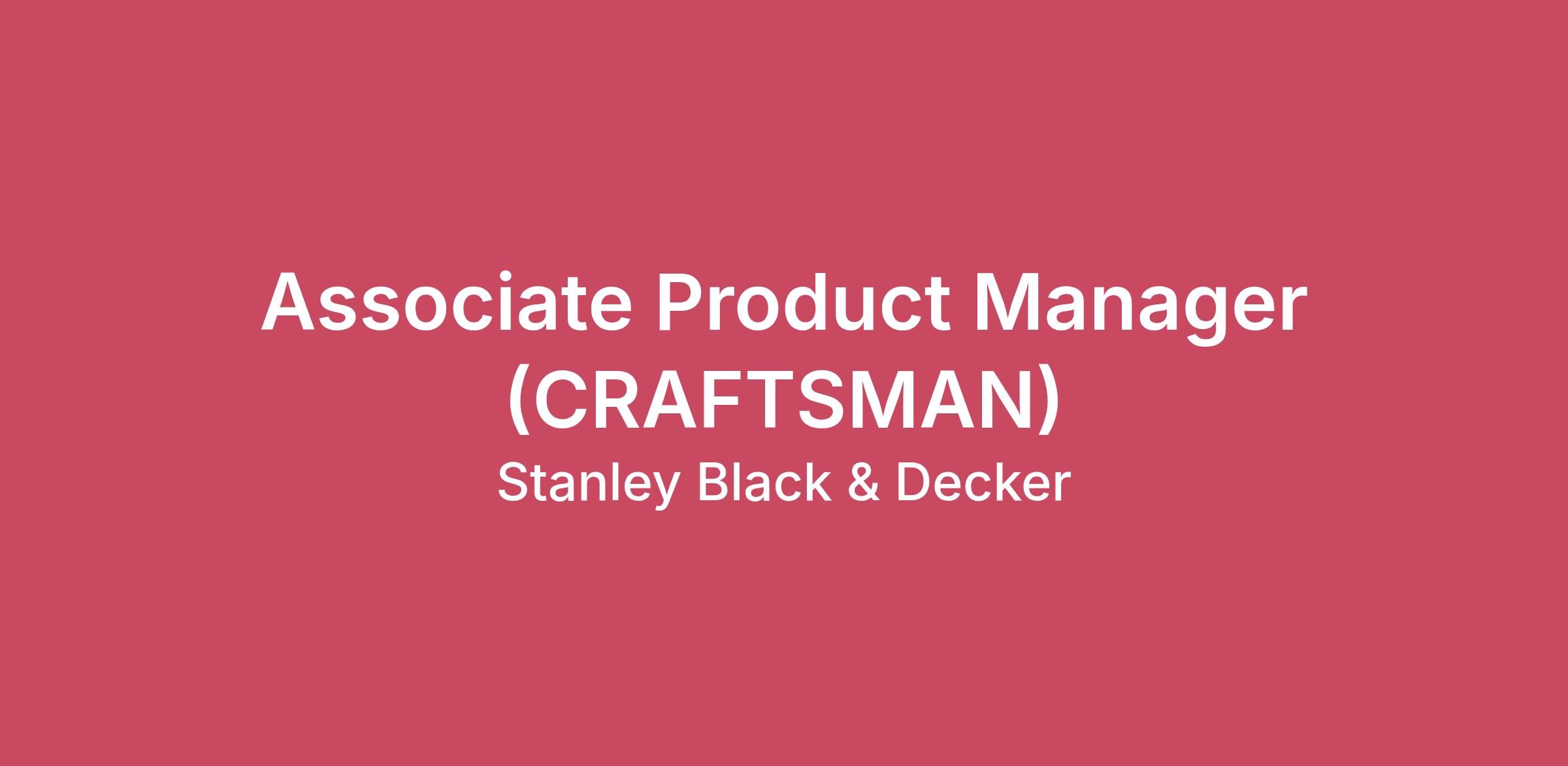 Come build your career.It takes great people to achieve greatness. People with a sense of purpose and integrity. People with a relentless pursuit of excellence. People who care about making things better For Those Who Make The World™. Sound like you? Join our top-notch team of approximately 48,000 diverse and high-performing professionals globally who are making their mark on some of the world’s most beloved brands, including DEWALT®, BLACK+DECKER®, CRAFTSMAN®, STANLEY®, CUB CADET®, and HUSTLER®.The Job:As an Associate Product Manager, you’ll be part of our Product Management team working as a hybrid employee (3 days per week in office). You’ll get to:Assist in managing the complete product lifecycle process, from concept to delivery, alongside the Product Manager.Collaborate with cross-functional teams (engineering, manufacturing, finance) to drive and develop new products that meet company objectives.Work with brand marketing and channel teams to develop product launch and sales promotion programs.Develop and implement marketing collateral, advertising materials, and web content for your managed product portfolio.Conduct end-user and competitive market research to determine pricing, margin, and profitability targets.Support the execution of comprehensive short- and long-term strategic plans for a profitable retail and industrial product portfolio.Maintain awareness of industry trends and develop a deep understanding of end users to inform new product launches.Validate product CTQs, testing, and claims with end users.Provide product training to internal and external stakeholders.Support special projects as assigned.The Person:You love to learn and grow and be acknowledged for your valuable contributions. You’re not intimidated by innovation. Wouldn’t it be great if you could do your job and do a world of good? In fact, you embrace it. You also have:A BS or BA in Marketing, Business Administration, Finance, Engineering, or a related field, or a combination of relevant education and experience.0-3 years of product management experience, with the ability to work effectively across functions and lead teams.Excellent written and verbal communication skills, with demonstrated problem-solving, research, and analytical abilities.Exceptional attention to detail and a “can-do” attitude, always striving to go above and beyond.Experience with Microsoft Excel, PowerPoint, and other applications in the Microsoft Office Suite.The Details:You’ll receive a competitive salary and a great benefits plan, including:Medical, dental, life, vision, disability, 401(k), Employee Stock Purchase Plan, paid time off, and tuition reimbursement in addition to programs & benefits in support of your well-being.Discounts on Stanley Black & Decker tools and other partner programs.And More:We want our company to be a place you’ll want to be – and stay. Being part of our team means you’ll get to:Grow: Be part of our global company with 20+ brands to grow and develop your skills along multiple career paths.Learn: Have access to a wealth of learning resources, including our digital learning portal.Belong: Experience an awesome place to work, where we have mutual respect and a great appreciation for a wide range of perspectives and experiences.Give Back: Help us continue to make positive changes locally and globally through volunteerism, giving back, and sustainable business practices.The base pay range for this position in Maryland is $51,000 - $78,000 per year. Pay is based on market location and may vary depending on job-related knowledge, skills, and experience. A sign-on payment may be provided as part of the compensation package, in addition to a full range of medical, financial, and/or other benefits, dependent on the position offered. Applicants should apply via Stanley Black and Decker’s internal or external careers site.What’s more, you’ll get that pride that comes from empowering makers, doers, protectors, and everyday heroes all over the world. We’re more than the #1 tools company. More than a driving force in outdoor power equipment. More than a global leader in industrial. We’re visionaries and innovators. As successful as we’ve been in the past, we have so much further to go. That’s where you come in. Join us!#LI-ZN#LI-HybridWe Don’t Just Build The World, We Build Innovative Technology Too.Joining the Stanley Black & Decker team means working in an innovative, tech-driven and highly collaborative team environment supported by over 58,000 professionals in 60 countries across the globe. Here, you’ll get the unique chance to impact some of the world’s most iconic brands including STANLEY TOOLS, DEWALT, CRAFTSMAN, MAC TOOLS and Black + Decker. Your ideas and solutions have the potential to reach millions of customers as we work together to write the next chapter in our history. Come build with us and take your career to new heights.Who We Are We’re the World’s largest tool company. We’re industry visionaries. We’re solving problems and advancing the manufacturing trade through innovative technology and our Industry 4.0 Initiative. We are committed to ensuring our state-of-the-art “smart factory” products and services provide greater quality to our customers & greater environmental and social value to our planet. We are unique in that we have a rich and storied history dating back to 1843, but that hasn't stopped us from evolving into a vibrant, diverse, global growth company. Benefits & PerksYou’ll get a competitive salary and a comprehensive benefits plan that includes medical, dental, life, vision, wellness program, disability, retirement benefits, Employee Stock Purchase Plan, Paid Time Off, including paid vacation, holidays & personal days, and tuition reimbursement. And, of course, discounts on Stanley Black & Decker tools and products and well as discount programs for many other vendors and partners.What You’ll Also GetCareer Opportunity: Caree