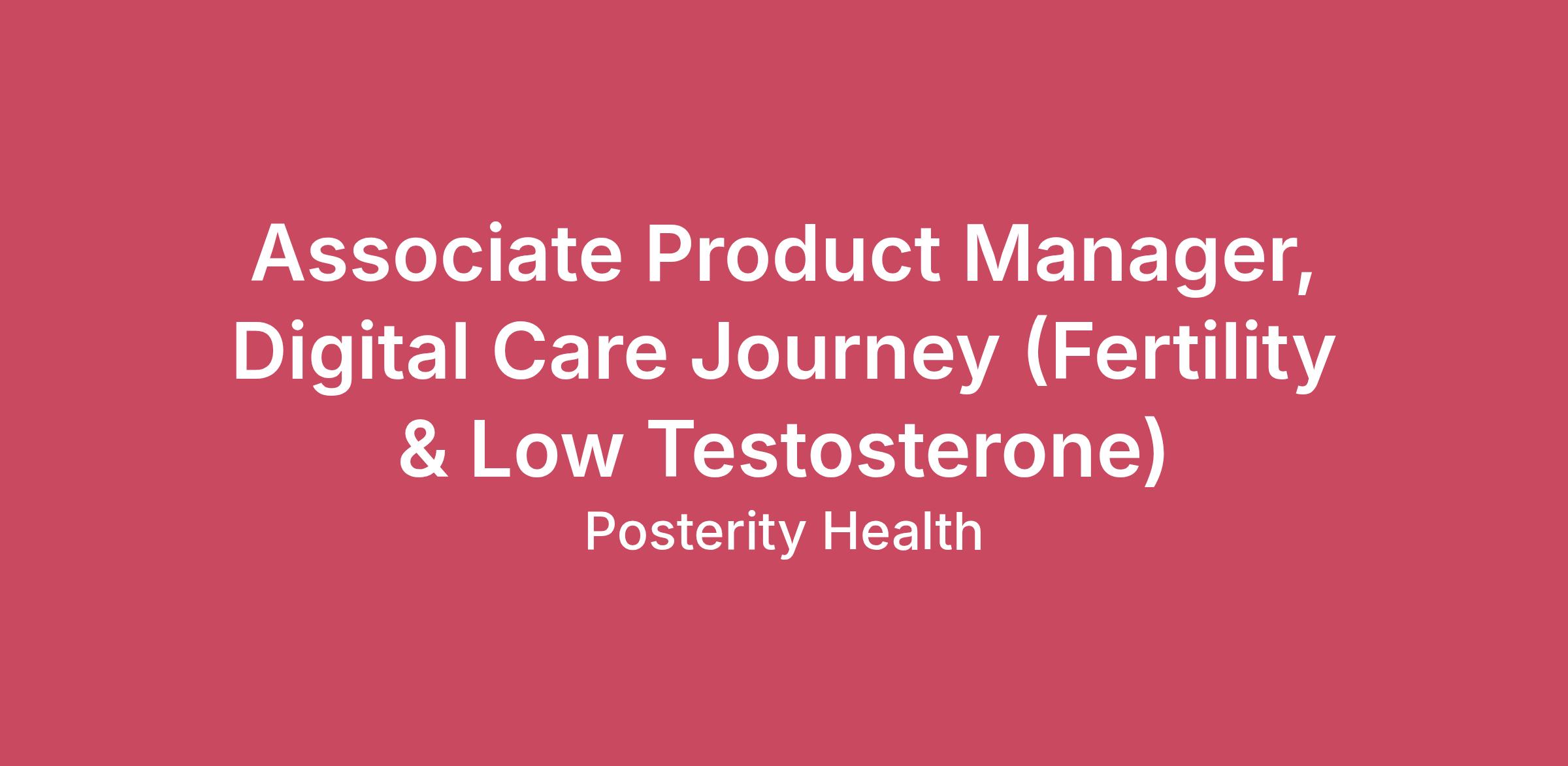 Job Title: Associate Product Manager, Digital Care Journey (Fertility & Low Testosterone) Type: Full Time Compensation: The base salary range for this role is $100,000-$120,000 per year. You will also be entitled to benefits. Individual pay decisions are based on a number of factors, including qualifications for the role, experience level, and skillset. Not sure if the title / salary range is the right fit? Don't let that hold you back-we'd still love to hear from you. We're committed to finding the right person for the role and are open to a conversation. Benefits: Paid Holidays, Paid-Time Off, Medical, Dental, Vision, 401k after 1 Year Location: Denver, Colorado (Preferred) or Remote How to Apply: at www.posterityhealth.com Company Overview: Posterity Health provides innovative solutions to address fertility challenges, optimize hormone levels, and manage long-term health risks, combining cutting-edge technology with expert clinical care. Through its telehealth services, at-home diagnostics, and in-person care, the company has become a trusted partner for men at every stage - from family building and fertility optimization to hormone management, vasectomies, low-testosterone treatments, and more. With having just completed our Series A, Posterity Health offers an exciting and fast-paced work environment where the sky's the limit. Position Overview: We are seeking an Associate Product Manager who is passionate about improving the digital health experience for individuals navigating fertility and hormone health. In this role, you will own the end-to-end digital member journey across products like at-home semen analysis kits, hormone testing, and supplements-ensuring a seamless, engaging, and outcomes-driven experience. You will work cross-functionally with engineering, clinical, and operations teams to translate user needs into thoughtful, scalable solutions that improve access, education, and care. As an Associate Product Manager, you will: Manage the end-to-end digital member experience for fertility and low testosterone product lines, including at-home semen analysis kits, at-home hormone testing, and supplement offerings. Collaborate with clinical, operations, and engineering teams to optimize onboarding, testing workflows, and follow-up care across digital touchpoints. Identify opportunities to improve engagement, satisfaction, and conversion through thoughtful UX enhancements, clear communication, and personalized product experiences. Partner with Data Engineers and Analysts to implement reporting and tooling that drives meaningful improvement for stakeholder teams in their ability to lead with data. Lead efforts across the organization to automate data integrations across various systems to reduce manual data transfer and to improve operational efficiency. Define, track, and deliver on core success measures, KPIs, and hypotheses to support company OKRs Use data and insights, including performance analytics, market research, user research, and business needs, to inform prioritization Preferred Qualifications: 4-7 years of experience in product management, business analysis, or a related role in a digital or healthcare environment Proven experience working on consumer-facing digital products, with an emphasis on user experience and engagement Familiarity with healthcare, digital health, or wellness-related products-especially fertility, hormone health, or diagnostics-is a strong plus Experience collaborating with engineering, design, analytics, and clinical teams in a fast-paced, cross-functional environment Comfortable working with data: able to interpret dashboards, define KPIs, and partner with analysts or use tools like Looker, Tableau, or SQL to extract insights Strong organizational and communication skills, with the ability to manage multiple priorities and align stakeholders Demonstrated ability to gather user and business requirements and translate them into actionable product plans Curiosity, empathy, and a passion for improving the patient or member experience