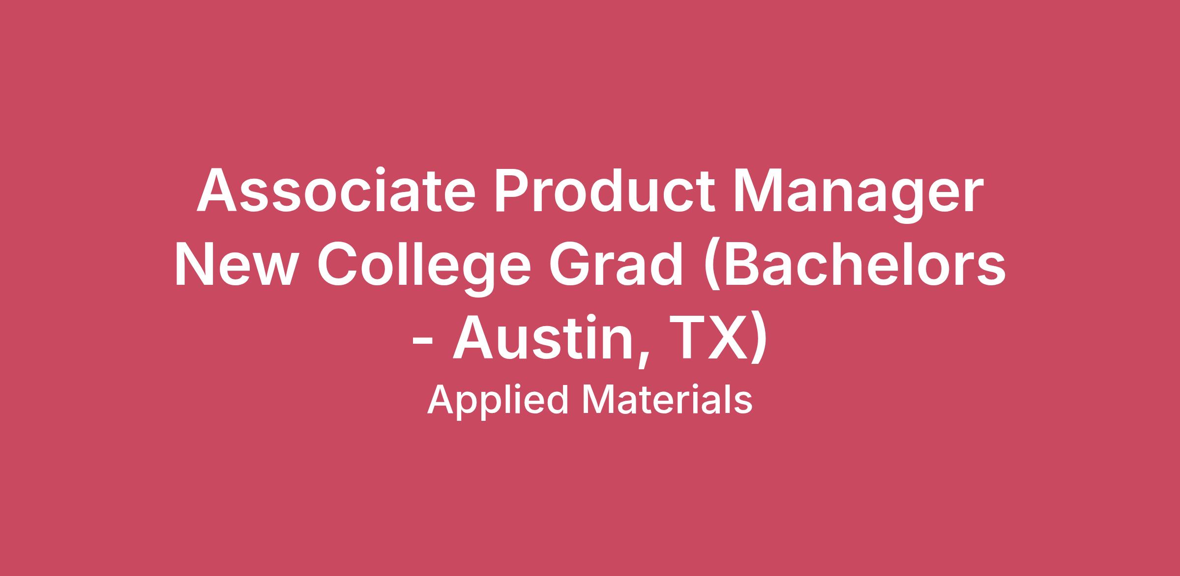 Who We AreApplied Materials is a global leader in materials engineering solutions used to produce virtually every new chip and advanced display in the world. We design, build and service cutting-edge equipment that helps our customers manufacture display and semiconductor chips – the brains of devices we use every day. As the foundation of the global electronics industry, Applied enables the exciting technologies that literally connect our world – like AI and IoT. If you want to push the boundaries of materials science and engineering to create next generation technology, join us to deliver material innovation that changes the world. What We OfferSalary:$65,500.00 - $90,000.00Location:Austin,TXYou’ll benefit from a supportive work culture that encourages you to learn, develop, and grow your career as you take on challenges and drive innovative solutions for our customers. We empower our team to push the boundaries of what is possible—while learning every day in a supportive leading global company. Visit our Careers website to learn more. At Applied Materials, we care about the health and wellbeing of our employees. We’re committed to providing programs and support that encourage personal and professional growth and care for you at work, at home, or wherever you may go. Learn more about our benefits. Job Description: The JOLT Operations Product Development (JOLT OPD) team drives technology, business processes, and strategic innovation supporting Applied Materials Global Operations. The rapid growth in semiconductor markets across the world presents unprecedented challenges and opportunities in manufacturing, supply chain and logistics. In this role, you will support digital products that serve as key enablers for Global Operations. Products will utilize the latest advances in software development, optimization, and operations strategy to help guide decision-making at all levels. If you have a passion for the use of data and software in operations and deploying products, you’ll fit right in. We need individuals who are thoughtful, eager to learn, and ready to change how an entire industry approaches solving problems.Responsibilities:· Understand business problems related to operations (manufacturing, supply chain, etc)· Work with senior product manager(s) to own specific product features and lead user acceptance testing· Identify and represent user needs by actively defining and aligning product requirements with stakeholder teams.· Help prioritize product backlogs and develop product roadmap· Establish a constructive working relationship with partner teams to determine progress against project objectives. Under supervision report progress against stated objectives· Interface with software project manager and development teams as requiredMinimum Qualifications:· Graduating with a bachelor’s degree in quantitative field (Computer Science, Industrial Engineering, Statistics, or equivalent).· Basic understanding of statistics, data science, and/or AI/ML.· Effective written and verbal communication skills, with an emphasis on documenting details· Comfortable asking questions in an ambiguous environment· Strong critical thinking skills and the ability to influence and communicate effectivelyPreferred Qualifications:· Proficiency in SQL and Python or similar language· Knowledge of software product development life cycle· Any relevant project management experience is beneficial· An internship in operations, supply chain, manufacturing, product management, systems engineering, or quality is a plus but not required.Additional InformationTime Type:Full timeEmployee Type:New College GradTravel:Yes, 25% of the TimeRelocation Eligible:YesThe salary offered to a selected candidate will be based on multiple factors including location, hire grade, job-related knowledge, skills, experience, and with consideration of internal equity of our current team members. In addition to a comprehensive benefits package, candidates may be eligible for other forms of compensation such as participation in a bonus and a stock award program, as applicable.For all sales roles, the posted salary range is the Target Total Cash (TTC) range for the role, which is the sum of base salary and target bonus amount at 100% goal achievement.Applied Materials is an Equal Opportunity Employer. Qualified applicants will receive consideration for employment without regard to race, color, national origin, citizenship, ancestry, religion, creed, sex, sexual orientation, gender identity, age, disability, veteran or military status, or any other basis prohibited by law.In addition, Applied endeavors to make our careers site accessible to all users. If you would like to contact us regarding accessibility of our website or need assistance completing the application process, please contact us via e-mail at Accommodations_Program@amat.com, or by calling our HR Direct Help Line at 877-612-7547, option 1, and following the prompts to speak to an HR Advisor. This contact is for accommodation requests only and cannot be used to inquire about the status of applications.