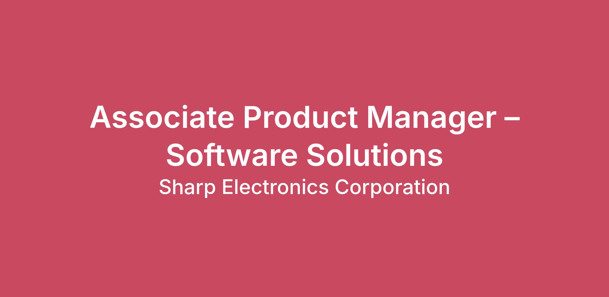 Overview The Associate Product Manager, Software Solutions - Audio/Video is responsible for bringing to market software solutions that enhance the company’s standard display products. This position is responsible for supporting business case creation, solution development and helping achieve the group’s revenue, volume, and profitability goals. They must possess a unique blend of business and technical savvy; a big-picture vision, and the drive to make that vision a reality. The successful candidate will be able to work within a fast-paced evolving organization focused on driving and supporting evaluation, marketing, and deployment of software solutions. This role must be able to work within an agile environment and must apply the abilities to deploy agile methodologies. Responsibilities Plan and execute successful new software solutions complementing current and future AV display products to support signage and transportation vertical markets.Work closely with the Software Solution and Innovation team in Japan to bring to market innovative Software Solutions - Audio/Video to support global business.Ensure the development, support and implementation of a detailed and thorough launch plan meets all critical milestones.Work with vendors and the internal supply chain team to identify, source and forecast components necessary to support new solutions as well as managing those components through their lifecycle. Monitor and analyze end user, product, sales, pricing, and general market segment trends.Contribute to product P&L and drive development of innovative solutions aligned with the company strategy.Research and analyze competitive activities including pricing, promotions, marketing strategies and product offerings to ensure that Sharp is competitive and profitable.Provide ongoing training to sales teams to include detailed product information, product positioning, presentations, and other sales support materials.With manager support, collaborate with Marketing Communications’ team to form the company's overall communications strategy, including print and on-line advertising and participation in key industry events or tradeshows.Plan and develop sales enablement tools focused on existing solutions.Work on special projects outside of standard analysis as assigned by manager.Analyze potential partner relationships that support sales and marketing of a product.Represent product marketing in cross functional teams to develop and implement companywide initiatives.Domestic and international travel 20%. Qualifications Bachelor’s degree in marketing, Software Engineering, Computer Science, Business with a software or technology focus, or equivalent experienceProven analytical, planning, and organizational skills with a strong attention to detail and follow throughTwo to three years full-cycle software marketing/product marketing/product development experienceDemonstrated understanding of network and cyber security Knowledge of Software OS libraries (e.g., Linux, Windows, Android) and REST API (Applications Programming Interface) experience requiredExperience with architecture framework, Docker container, Symmetric and A symmetric, is a plusGeneral understanding of solutions architecture, deployment, and scalability of software solutionsCisco Certified Network Associate (CCNA) certification required within six months of employmentDemonstrated ability to plan, track and launch software productsProven success working collaboratively with domestic and international cross-functional teams to deliver the right product amid established competitionExperience in identifying business trends, market impact and engaging internal and external customersAbility to think and execute at both strategic and operational levelsExcellent communicator, both verbal and written, with strong presentation skillsAbility to travel (domestic and internationally) up to 20%ABOUT US: Sharp Imaging and Information Company of America (SIICA)Sharp Imaging and Information Company of America (SIICA) is a division of Sharp Electronics Corporation, the U.S. subsidiary of Japan's Sharp Corporation, a global technology company which has been named to Fortune magazine's World's Most Admired Company List. Sharp strives to help businesses achieve Simply Smarter work by helping companies manage workflow efficiently, create immersive and engaging environments, and increase productivity. SIICA offers a full suite of secure printer and copier solutions, professional and commercial visual displays and projectors, software management and productivity software and markets durable Dynabook laptops. As a total solutions provider, Sharp has a reputation for innovation, quality, reliability, and industry-leading customer support expertise. Compensation for this positionThe compensation range for this role is $75,000-$85,000. The listed salary range or contractual rate excludes bonuses, incentives, differential pay, and any other forms of compensation or benefits. The starting salary will be determined by several variables, including but not limited to experience, education, training, certification, and location. You may also be eligible to receive an annual discretionary incentive award, commissions, and program-specific awards, which are subject to the rules governing these programs.Employee perks Comprehensive, family-friendly healthcare plans (medical, dental, vision). 401k retirement plan with a competitive match and plenty of financial support tools. Employee Assistance Plan to care for you and your family's mental and behavioral health, balance, and support. Financial protection for you and your family (life insurance and disability insurance)Rewarding and holistic wellness program.Training, professional development, and mentorship Full suite of voluntary insurance benefits for financial planning (auto, home, ID protection and legal)Dynamic culture eager to innovate, enhance diversity, and work smarter. Sharp Electronics Corporation is a