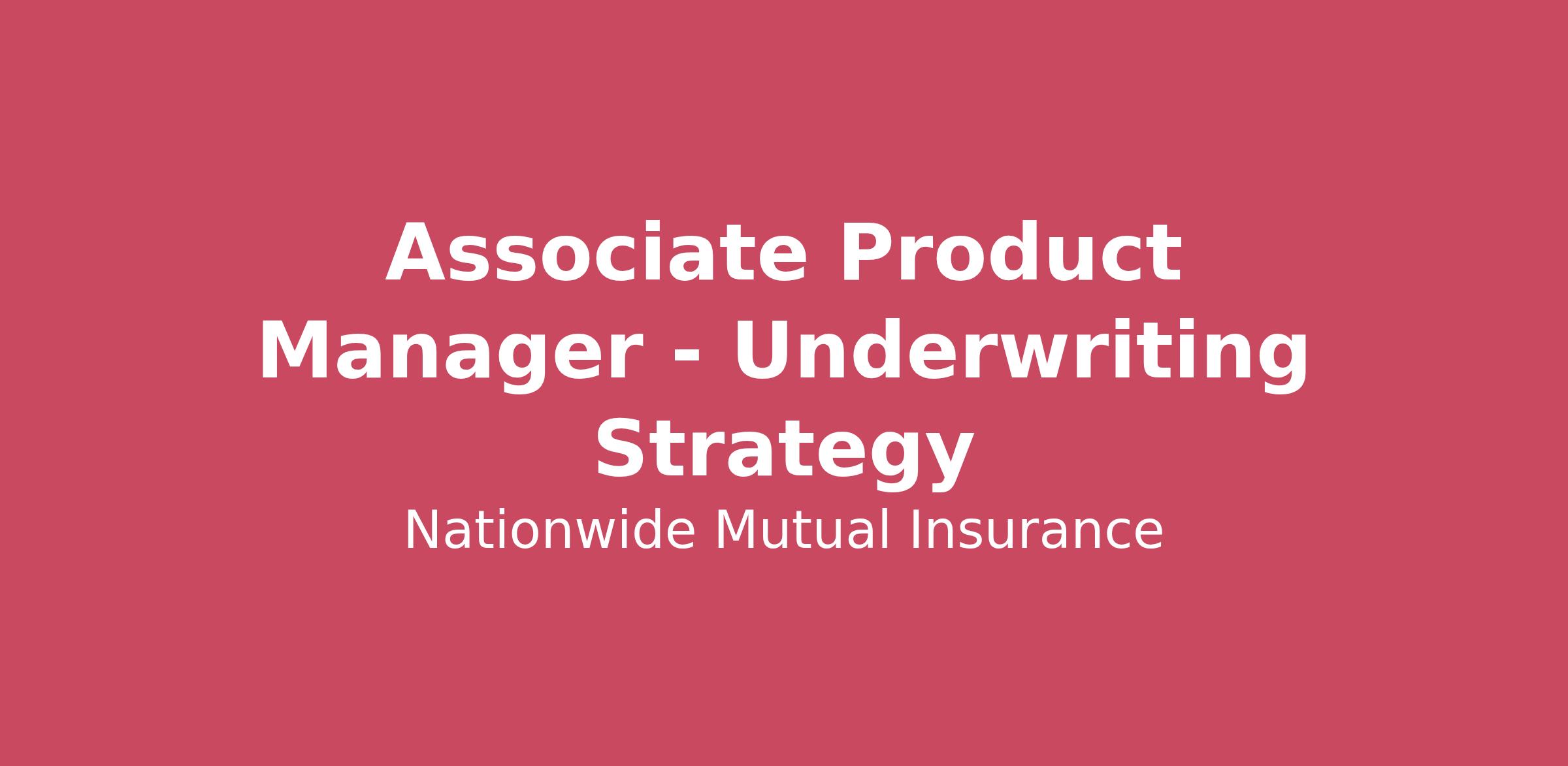Are you passionate about being part of a team at a Fortune 100 company with nearly $70 billion in annual sales that delivers extraordinary care to help individuals and businesses prepare for and protect their future? If so, then Nationwide Financial could be the place for you! At Nationwide®, “on your side” goes beyond just words. Our customers and partners are at the center of everything we do and we’re looking for associates who are passionate about delivering extraordinary care.Associate Product Manager – Underwriting Strategy The Associate Product Manager, Underwriting Strategy, will play a critical role in shaping and advancing the portfolio-level underwriting strategy for our Pet Insurance products. This role requires a blend of analytical rigor, strategic thinking, and strong cross functional collaboration to drive profitable growth. The APM will use data-driven insights to evaluate portfolio performance, identify trends, and uncover opportunities to strengthen pricing, optimize coverage, and refine risk appetite. They will apply foundational underwriting knowledge and strong business acumen to understand economic drivers and evaluate the impact of strategic decisions across the portfolio. Success in this role requires exceptional analytical thinking—distilling complex datasets into clear insights—and an ability to communicate those findings effectively across both technical and nontechnical audiences. The APM must be adept at solving complex problems, proposing structured, actionable recommendations, and influencing stakeholders across Product, Underwriting, Actuarial, Claims, and other functions. Operating in a dynamic and evolving environment, this individual will demonstrate adaptability and a proactive, strategic mindset, ensuring that decisions are not only rooted in data but also aligned with long-term product and profitability goals. Through strong relationships, effective communication, and balanced judgment, the APM will help translate strategic underwriting goals into operational execution and measurable portfolio outcomes. Key focus areas include: Assessing portfolio trends and identifying areas for profitable growth. Applying underwriting acumen and analytical techniques to evaluate performance. Supporting pricing, coverage, and appetite decisions driven by data insights. Partnering with Underwriting and Product to operationalize strategic recommendations. Contributing to a cohesive, scalable underwriting strategy for Pet Insurance. This role is ideal for someone who thrives in a data-driven environment, enjoys solving complex business problems, and is motivated by the challenge of building a strong, strategic underwriting foundation for a growing product line. Key Responsibilities Analyze product, portfolio, and segment performance to identify trends, risks, and opportunities for profitable growth. Support development and execution of underwriting strategies related to pricing, coverage, rules, and risk appetite. Conduct quantitative analyses using available data sources to assess performance drivers and evaluate proposed business actions. Develop recommendations for rate changes, coverage revisions, underwriting rules, and appetite adjustments. Collaborate closely with Underwriting, Product, Actuarial, Claims, Distribution, and other partners to operationalize strategy and ensure alignment across teams. Monitor competitive landscape, market shifts, and regulatory changes that may impact underwriting strategy. Qualifications Required: Bachelor’s degree in Business, Economics, Finance, Mathematics, Statistics, Analytics, or related field. 1–3 years of experience in product, underwriting, insurance analytics, or a related discipline. Strong analytical skills and experience working with datasets, metrics, and performance insights. Understanding of underwriting principles, insurance product structures, and pricing fundamentals. Proficiency in Excel; experience with SQL, Tableau, Power BI, or similar tools is a plus. Ability to synthesize complex information and communicate it clearly to both technical and non-technical stakeholders. Preferred: Experience in pet insurance, P&C insurance, or specialty insurance markets. Familiarity with rating models, segmentation strategies, and portfolio management concepts. Exposure to agile product development or cross functional project work. Demonstrated ability to think strategically and translate insights into action. This role does not qualify for employer sponsored work authorization. Nationwide does not participate in the STEM OPT extension program.#LI-SS1 Job Description SummaryOur work is essential to helping Nationwide build future capability to serve customer needs. Keeping existing products relevant and marketable and building new products takes research, critical thinking, practicality and collaboration. If you enjoy gathering input and information, working independently and on a team and creating innovative solutions for customers, we want to know more about you!As an Associate Product Manager, you'll build and maintain assigned product features and capabilities with shared responsibility for growth and profitability. This will include developing project work plans for new business or new implementation. You'll have opportunities to help with planning for assigned products and states. We'll count on you to interpret trends, both industry and company-related and make recommendations based on your analysis. In addition, you'll need to evaluate regulatory and compliance issues and their implementation.Job DescriptionKey Responsibilities:Provides recommendations and feedback on pricing point decisions, indications, rate factors, design features and associated processes. Performs competitive analysis.Supports all functional areas of the company related to product design and management. Makes product recommendations based on acquired functional and regional knowledge.Assists in developing key initiatives on pro