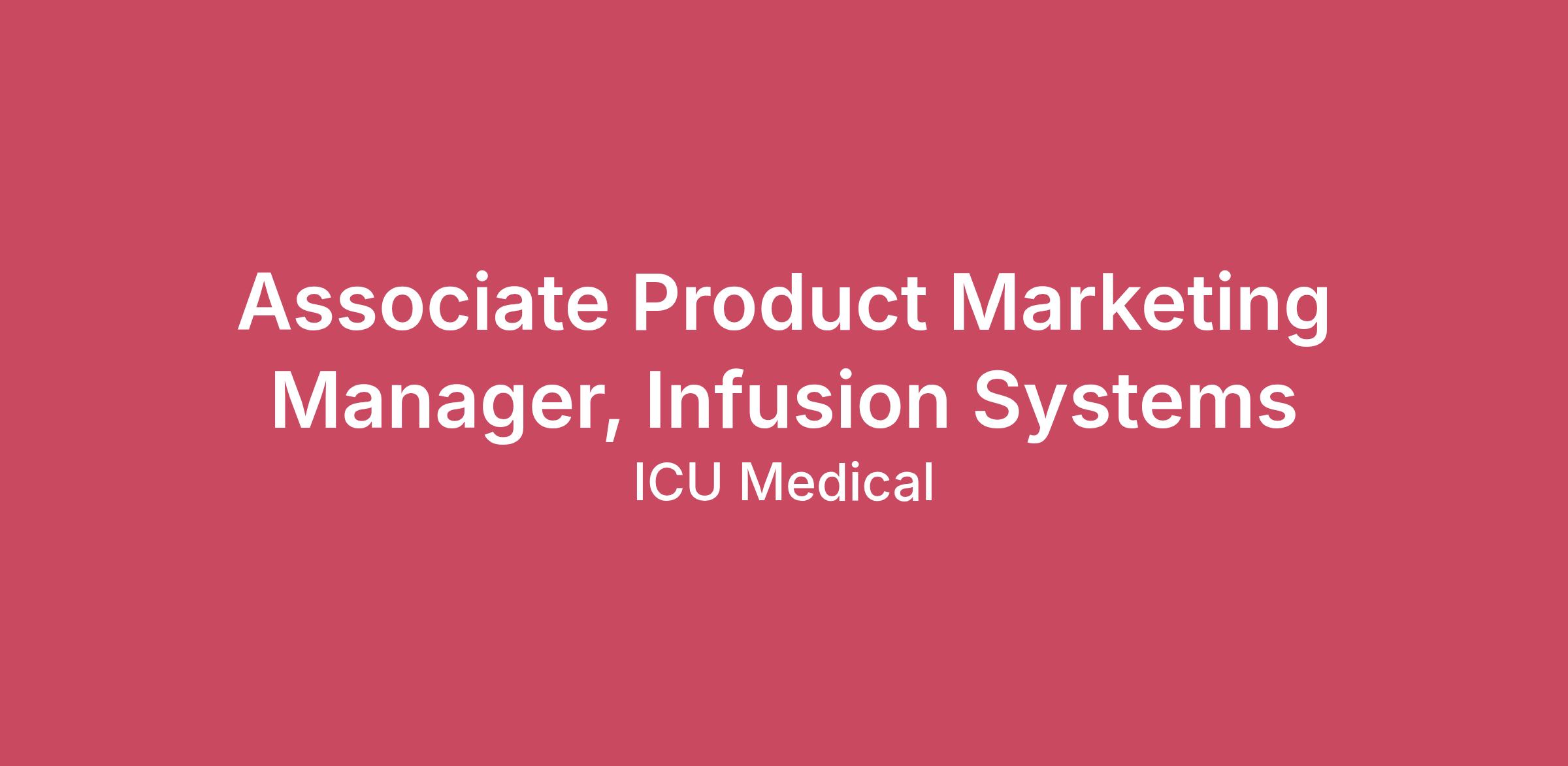 Position Summary The Associate Product Marketing Manager works collaboratively to develop and maintain marketing tools, sales training programs, and marketing communication materials that support the launch and ongoing sales efforts of the Infusion Systems marketing team. This position is responsible for working closely day-to-day with the Global Product Managers on the Infusion Systems portfolios and will work with the global commercial team to monitor market trends, analyze reports and ensure marketing projects meet specific milestones and timelines. Essential Duties & Responsibilities Manage marketing projects involving cross functional teams with strict timelines and milestones. Report on the process of marketing projects to leadership with details around accomplishments and risks Develop and analyze reports from our CRM tool, competitive and current install base reports Work alongside Global Product Managers to track, maintain and manage marketing projects Develop product knowledge and function as a resource for customers, Sales, and Contracts personnel. It requires understanding, collaborating with and influencing key corporate stakeholders, including R&D and operations/production. Work with the Marketing organization to provide input to product design, development and release process for the Infusion Systems portfolios. Support Marketing, Sales and clinical support teams through the development and maintenance of various marketing collateral, including field training presentations, online and printed marketing content, and demos, including the maintenance of our digital sales enablement tools. Develop hands-on, in-depth knowledge of competitive products and maintain technical analysis of competitive strengths and weaknesses, features, underlying technology, etc. to establish technical differentiation and feature/benefit statements. Monitor competitor activity and current industry/clinical activity through published papers, studies, and media. Identify opportunities to enhance existing product offerings and communicate to the upstream product development team. Provide product knowledge and training to internal stakeholders Respond to and support RFP and RFI requests for the Infusion Systems portfolios Administer our RFP response tools with CQI efforts, including RFP debriefing and analytics Work on special assignments as they arise Knowledge & Skills Proficient in Excel (Microsoft Office Specialist: Excel Associate), Word, PowerPoint, and Outlook Excellent verbal and written communication skills with the ability to adapt and articulate the ICU Medical portfolio value. Background in medical device marketing is highly desired Strategic Planning: Ability to define project scope, goals, and deliverables. Strong project planning skills, including organizing tasks, tracking deadlines, and ensuring deliverables move through the workflow smoothly. Risk Management: Proactively identifying and mitigating potential project risks. Anticipates basic risks or delays, escalates issues when needed, and adapts to shifting priorities. Communication: Effective stakeholder management and reporting. Minimum Qualifications, Education & Experience Must be at least 18 years of age Bachelor’s degree from an accredited college or university is required; additional consideration for an MBA and/or technical undergraduate degree Prior product management experience is preferred but not required. Experience with project management and collaboration tools to keep work organized and visible is a plus. 2+ years of relevant experience required. Work Environment This is largely a sedentary role. This job operates in a professional office environment and routinely uses standard office equipment. Typically requires travel 5-20% of the time Salary Range - $65k – $129k The salary range displayed represents the annual base salary we reasonably expect to pay for this role. The actual salary may vary [differ] based upon various factors, including, but not limited to, relevant experience, skills, education, licensure/certifications, and geographic location ICU Medical has consistently provided you with clinical innovations that help solve real-world challenges. With the acquisition of Hospira Infusion Systems in 2017 and Smiths Medical in 2022, we are now a global market leader with a complete line of clinically-essential IV therapy and high-value critical care products for hospital, alternate site, and home care settings. We're ready to bring you consistent quality, innovation, and value in more areas than ever. Our focus allows us to bring you: Dedicated and non-dedicated IV sets and needlefree connectors clinically proven to provide an effective barrier against bacterial transfer and colonization. The industry’s broadest IV smart pump offering covering large volume, pain management, and ambulatory needs. IV medication safety software providing full IV-EHR interoperability with the highest customer satisfaction and compatibility with more EHR systems than any other company. Significant US IV solutions manufacturing and supply capabilities. This role is based remotely; the incumbent may be remote in any state other than Colorado; California; Connecticut; Montana, Maine or New York. ICU Medical EEO Statement: ICU Medical is committed to being an Equal Opportunity Employer. We ensure that all qualified applicants receive fair consideration for employment regardless of race, color, nationality or national origin, ethnicity, sex, gender, religion or belief, marital or civil partnership status, sexual orientation, pregnancy or maternity, age, disability, or protected veteran status. If you are an individual with a disability and need reasonable accommodation to participate in the employment selection process, please contact us at humanresources@icumed.com. We are committed to providing equal access and opportunities for all candidates. ICU Medical EEO Policy Statement Know Your Rights: Workplace Discrimination is Illegal P