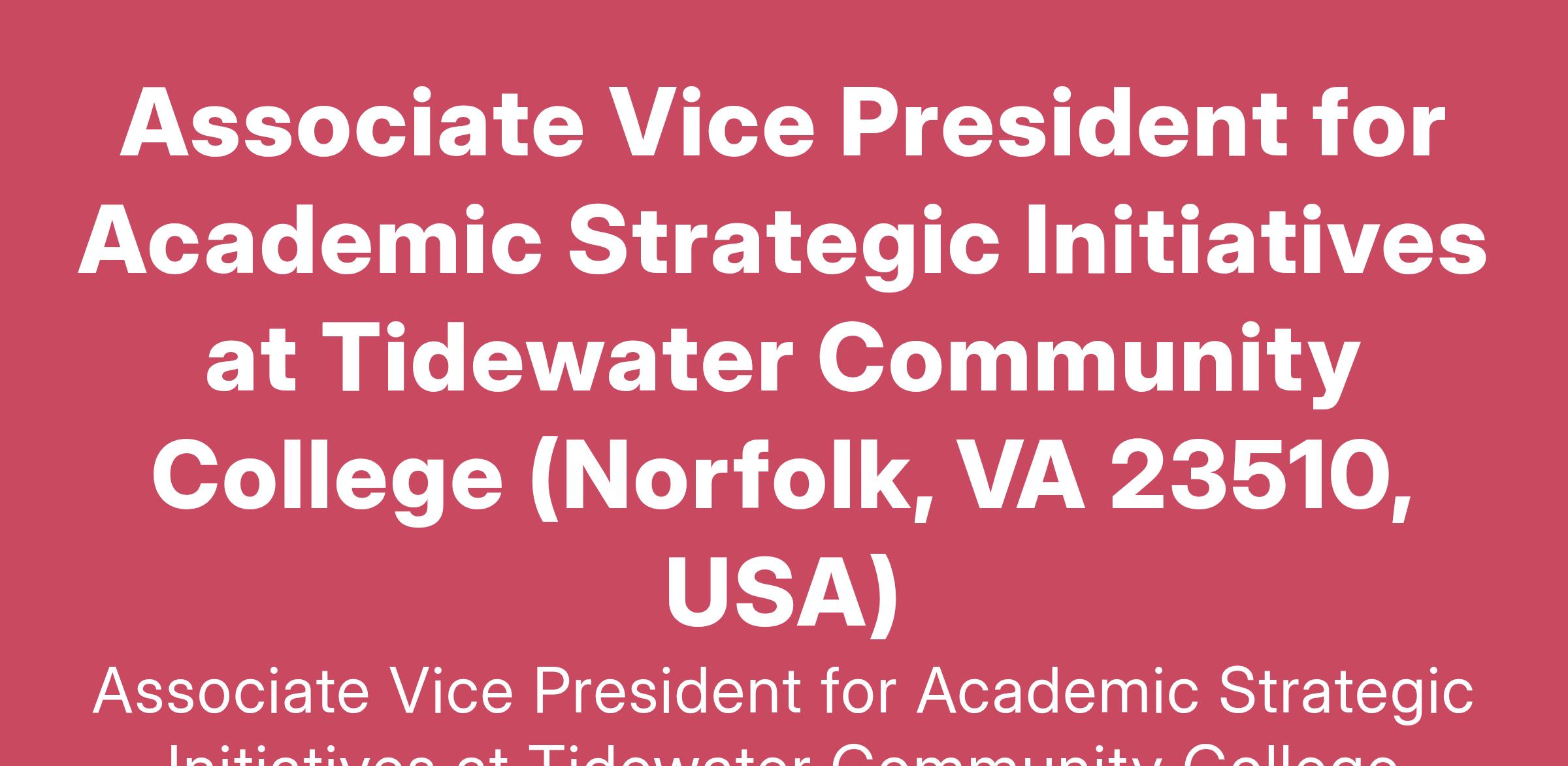 Associate Vice President for Academic Strategic Initiatives at Tidewater Community College (Norfolk, VA 23510, USA)