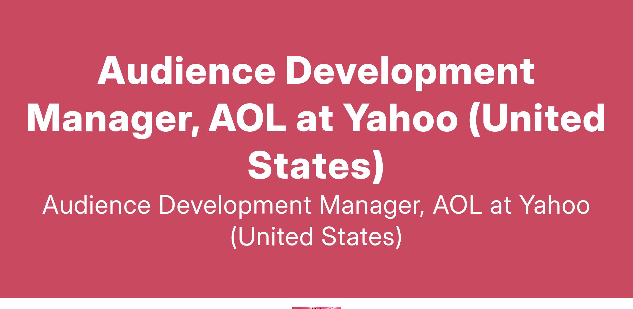 Audience Development Manager, AOL at Yahoo (United States)