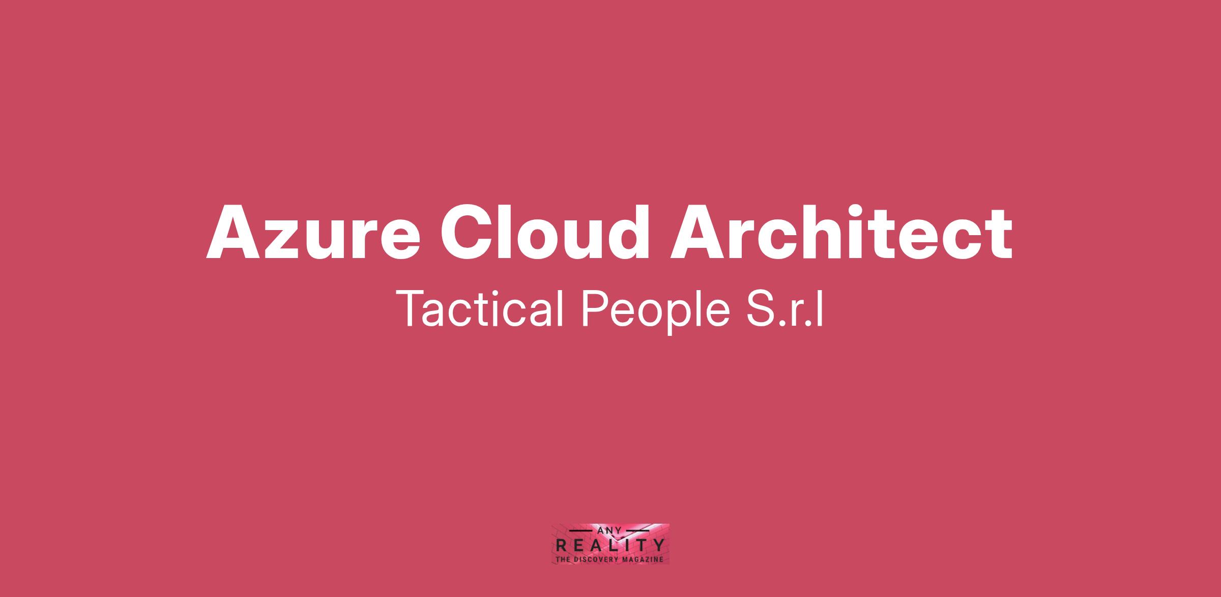 Unisciti a TACTICAL PEOPLE: Innovazione, Persone e Crescita nel Cuore della Digital Transformation Da oltre 20 anni, TACTICAL PEOPLE si posiziona come leader nel mercato ICT, guidando con passione e competenza i nostri clienti di medie e grandi dimensioni attraverso il dinamico percorso della digital transformation. La nostra mission è chiara: non solo abbracciare il cambiamento tecnologico, ma guidarlo, creando soluzioni all'avanguardia che plasmino il futuro digitale. In TACTICAL PEOPLE, crediamo fortemente nel mettere le persone al centro di ogni nostra iniziativa. Le persone sono il cuore pulsante della nostra azienda; il loro benessere, la loro crescita e il loro sviluppo sono la nostra priorità. Ci impegniamo a condividere le strategie aziendali con trasparenza e a fornire formazione e supporto a ogni livello, garantendo che ogni membro del team sia equipaggiato per eccellere e innovare. Stiamo cercando individui che condividano la nostra visione, che siano guidati dalla passione per la tecnologia e che desiderino essere protagonisti nella costruzione di un futuro digitale più luminoso. Se sei pronto a far parte di una squadra che valorizza il talento, incoraggia la crescita personale e professionale e lavora in prima linea nel settore della digital transformation, TACTICAL PEOPLE è il posto giusto per te. Posizione Aperta: Azure Cloud Architect Sede: Remoto - sporadiche trasferte Descrizione del ruolo: Il candidato ideale ha esperienza nella progettazione e implementazione di soluzioni basate su Microsoft Azure. Cosa offriamo: Inserimento immediato in una Tech Community giovane e dinamica. TACTICAL LEARNING HUB, con corsi di aggiornamento e formazione. Il presente annuncio è rivolto ad entrambi i sessi, ai sensi delle leggi 903/77 e 125/91, e a persone di tutte le età e tutte le nazionalità, ai sensi dei decreti legislativi 215/03 e 216/03. I curricula dovranno pervenire completi di dicitura che autorizza il trattamento dei propri dati: “Si autorizza al trattamento dei dati personali ai sensi del D. Lgs. 196/2003.