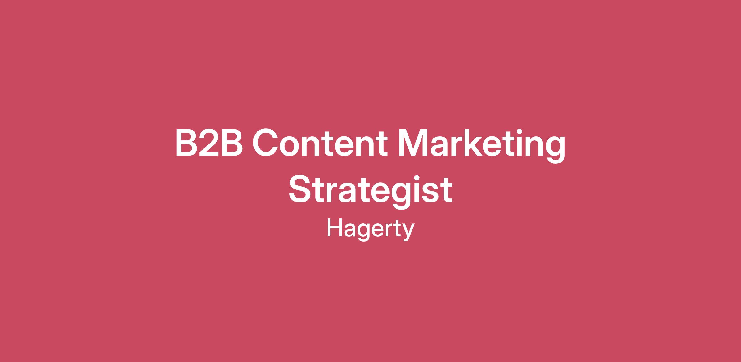 As the B2B Content Marketing Strategist, you will play a key role in expanding Hagerty’s ability to deliver high-quality, relevant, and timely content to our agent, broker, and carrier audiences (i.e., "B2B" channel stakeholders). Reporting to the Director of Marketing Strategy, this role supports the creation, optimization, and management of all B2B content—emails, partner materials, articles, organic social, sales enablement resources, and training content.As a subject matter expert in Hagerty’s B2B voice and positioning, you’ll craft content that informs, inspires, and empowers the agent and broker community while supporting Hagerty’s broader business goals. Working cross-functionally with creative, product, sales, and marketing teams, you’ll ensure every message reflects Hagerty’s mission, brand voice, and commitment to our partners’ success.This role is ideal for a skilled communicator and content strategist who thrives at the intersection of storytelling, strategy, and execution—someone who can translate complex ideas into clear, compelling, and actionable messages that move agents to engage.Ready to get in the driver’s seat? Join us!Key ResponsibilitiesAuthor, edit, and manage B2B content across multiple channels, including emails, newsletters, partner content, sales enablement materials, organic social, and articles.Serve as the subject matter expert (SME) for Hagerty’s agent/broker voice, ensuring all agent- and broker-facing content aligns with brand guidelines and channel objectives.Collaborate with creative, product, and sales teams to plan, produce, and deploy content that supports agent engagement, education, and sales enablement.Maintain an editorial calendar and oversee content workflows to ensure timely delivery, consistency, and strategic alignment.Partner with internal stakeholders and external partners to co-develop content that highlights collaborations, new programs, and thought leadership.Manage content within existing and emerging platforms to support marketing automation and personalization strategies.Support the execution of Hagerty’s agent and broker newsletters, ensuring relevance, clarity, and measurable impact.Develop and refine sales and marketing collateral, training tools, and agent resources to enhance the partner experience and drive performance.Collaborate with analytics and digital marketing teams to track engagement and content performance, using insights to continuously optimize output.Contribute to campaign ideation, copywriting, and storytelling that helps reinforce Hagerty’s leadership position in the specialty insurance and enthusiast vehicle market.What you’ll do Create content that connects Hagerty’s brand, products, and values to the agent and broker audience in meaningful, relevant ways.Develop content strategies that strengthen Hagerty’s partnerships and support the B2B insurance channel’s growth.Work cross-functionally to ensure that all marketing communications are cohesive, accurate, and strategically aligned.Support the Director of Marketing Strategy in scaling Hagerty’s B2B content production and delivery capabilities.Translate marketing strategy into clear, actionable, and engaging content for agents, brokers, and carrier partners.Ensure every message reflects Hagerty’s creative principles and brand voice.This might describe youBachelor’s degree in Marketing, Communications, Journalism, or related field.Proven experience in marketing, content strategy, or editorial experience, ideally in B2B, insurance, financial services, or related industries.Proven ability to write, edit, and manage content across multiple formats and channels.Strong grasp of content strategy principles, audience segmentation, and messaging frameworks.A passion for cars, culture, and Hagerty’s purpose to save driving for future generations is preferable.Excellent storytelling and writing skills with a knack for translating complex ideas into clear, compelling copy.Familiarity with marketing automation tools, CRM systems, and analytics platforms—experience with Salesforce a plus.Detail-oriented with exceptional editorial judgment, consistency, and brand sensibility.Collaborative and proactive, with strong communication skills and the ability to work across teams and departments.Data-driven mindset with an interest in content performance metrics and optimization.Other things to noteThis role can be worked from any U.S. remote location.Familiarity with public company requirements, including Sarbanes Oxley and key regulations, if applicable. For SOX compliant roles, responsible for designing, executing, and documenting internal controls where they have been identified as owners to prevent errors in financial reporting, processes, and business operations. Including attestation to the completeness, accuracy, and compliance of all financial reporting data, where applicable.Say hello to HagertyHagerty is an automotive enthusiast brand and the world’s largest membership organization. Along with being a best-in-class provider of specialty insurance for enthusiasts, Hagerty is also home to the Hagerty Drivers Foundation, Garage + Social, Hagerty Drivers Club, Marketplace and so much more. Committed to saving driving for future generations, each and every thing Hagerty does is dedicated to the love of the automobile.Hagerty is a rapidly growing company that values a winning culture. We provide meaningful work for and invest in every single team member.At Hagerty, we share the road. We are an inclusive automotive community where all are welcomed, valued and belong regardless of race, gender, age, or car preference. We are united by our shared passion for driving, our commitment to preserve car culture for future generations and our desire to make a positive impact in the world.If you reside in the following jurisdictions: California, Colorado, District of Columbia, Hawaii, Illinois, Maryland, Minnesota, Nevada, New York, New Jersey,