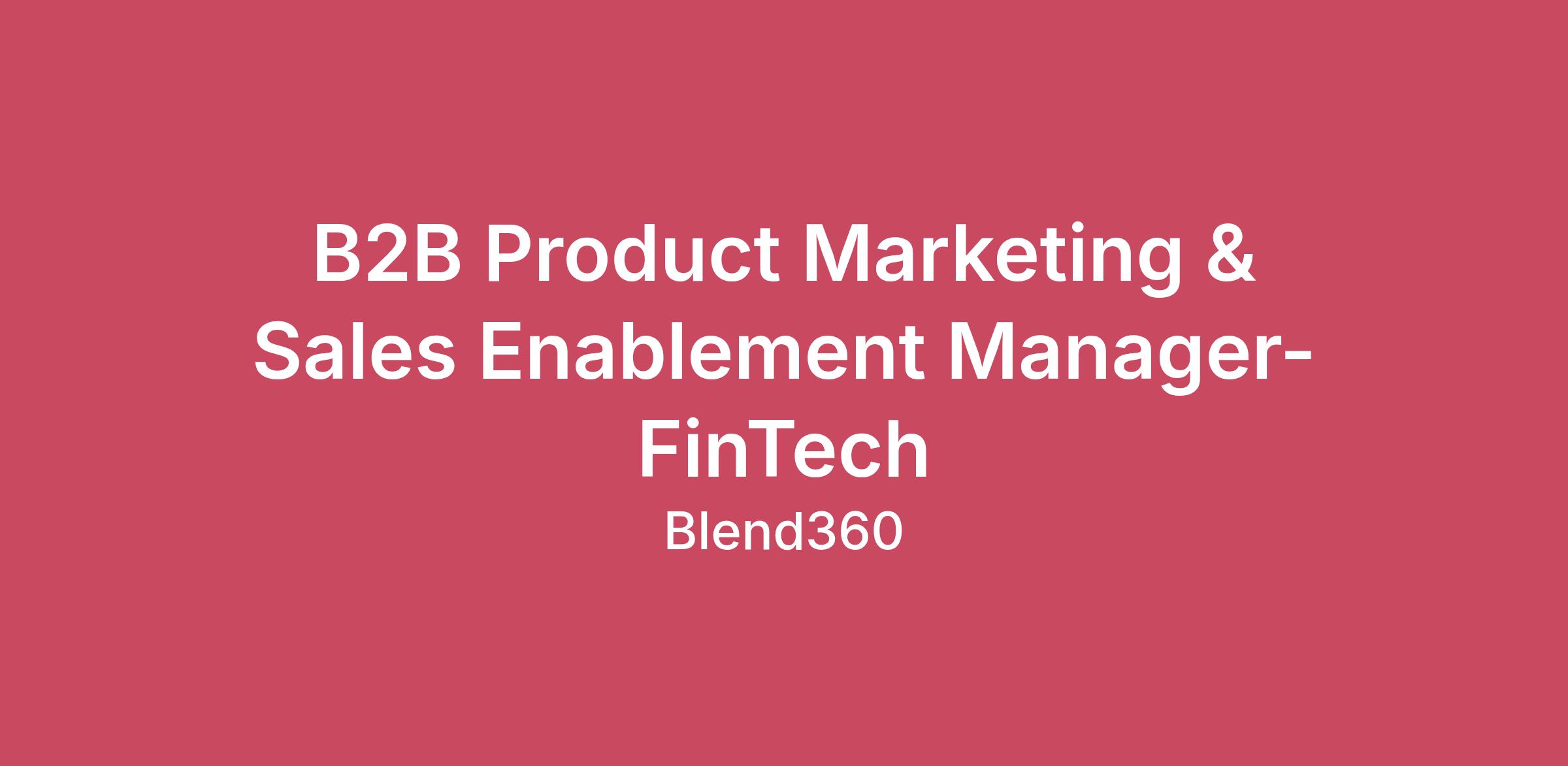 Company DescriptionBlend is a premier AI services provider, committed to co-creating meaningful impact for its clients through the power of data science, AI, technology, and people. With a mission to fuel bold visions, Blend tackles significant challenges by seamlessly aligning human expertise with artificial intelligence. The company is dedicated to unlocking value and fostering innovation for its clients by harnessing world-class people and data-driven strategy. We believe that the power of people and AI can have a meaningful impact on your world, creating more fulfilling work and projects for our people and clients.Job DescriptionOur global payments and financial services client is seeking a B2B Product Marketing & Sales Enablement Manager to support the development and scaling of B2B marketing solutions for community issuer clients, including regional banks and credit unions.This role sits within a high-growth, volume-driven environment supporting 5000+ community financial institutions and is focused on building repeatable, scalable product solutions that can be commercialized across the issuer ecosystem. The consultant will operate in a highly strategic, internal-facing role that partners with product, marketing, and sales teams to design new solutions, define go-to-market strategies, and enable internal account teams with the tools and materials needed to drive adoption.The Details:Location: Remote within the U.S. (San Francisco area preferred). Duration: Through September 2026 with the possibility of extension (must be able to work on Blend’s W2)Benefits: We do offer benefits to our full-time consultants, including Health, Vision, Dental, 401K plan, Life Insurance, Pretax Commuter Benefits, and an incredibly supportive team cheering you on!What you’ll do:Lead the development of new B2B product solutions for community issuers, focused on scalable marketing and payments offerings.Conduct market research and competitive analysis to identify gaps, opportunities, and emerging needs within the community issuer segment.Ideate, define, and build product concepts, including value propositions, use cases, and positioning.Create product plans, pricing frameworks, and commercialization strategies to bring new solutions to market.Develop go-to-market strategies and sales enablement materials for internal Account Executives and sales teams.Build repeatable toolkits, playbooks, and solution packages to help manage high-volume issuer demand.Partner closely with internal stakeholders across Product, Marketing, Sales, and Strategy to ensure alignment between solution design and commercial execution.Translate complex product capabilities into clear internal messaging and positioning.Support internal training and enablement efforts to drive adoption of new solutions.Continuously evaluate performance and feedback to refine product offerings and scale successful solutions.QualificationsEducation & Experience:Bachelor’s degree required; advanced degree preferred.7–12 years of experience in B2B product marketing, product management, commercialization, or go-to-market roles.Strong background in payments, financial services, commercial cards, or global payments.Experience developing and scaling B2B product solutions in high-volume environments.Core Skills & Capabilities:Proven experience in product solution development, including market research, ideation, and commercialization.Strong expertise in product marketing, go-to-market strategy, and sales enablement.Experience creating pricing models, product plans, and internal solution frameworks.Ability to build repeatable, scalable toolkits and playbooks for internal teams.Comfortable operating in highly strategic, internal-facing roles.Strong analytical skills and ability to translate insights into product opportunities.Soft Skills:Strategic thinker with a strong commercial mindset.Highly collaborative and comfortable influencing across functions.Excellent communicator with strong internal stakeholder presence.Proactive, self-directed, and comfortable operating in ambiguity.Strong organizational skills with the ability to manage complex initiatives end-to-end.Additional InformationThe starting pay range for this role is $60.00 - $65.00 per hour. Actual compensation within the range will be dependent on several factors including but not limited to relevant experience, skills, certifications, training, and location. It is not typical for an individual to be hired at or near the top of the range and determining factors for compensation are considered for each individual circumstance. BLEND360 also offers a competitive benefits program to meet the health and financial well-being of our team and their families. You can look forward to a range of benefits including medical, dental, vision, 401K, PTO, commuter benefits, spending accounts, life insurance, disability coverage, and EAPs.A diverse workforce is a strong workforce To deliver growth at BLEND360 and for our clients, we believe as a Talent Solutions Company, we have a responsibility and unique opportunity to positively impact the workforce. Diversity has played a critical role in our history, our growth, and continues to have a profound impact on our success. We are determined to have equality in the workplace, within our team and as an extension of our clients’ team.BLEND360 is an equal opportunity employer.