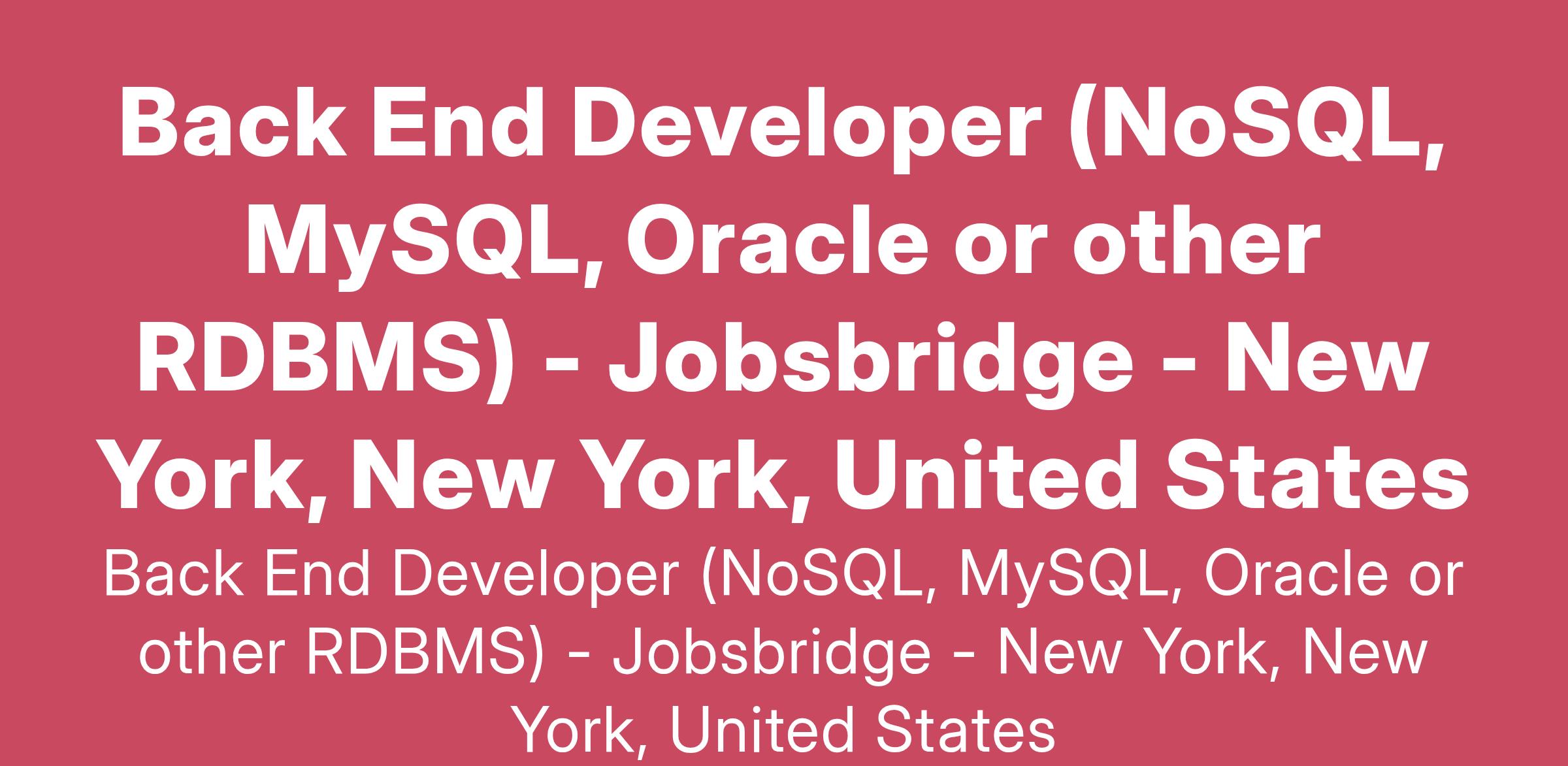 Skill NoSQL, MySQL, Oracle or other RDBMS