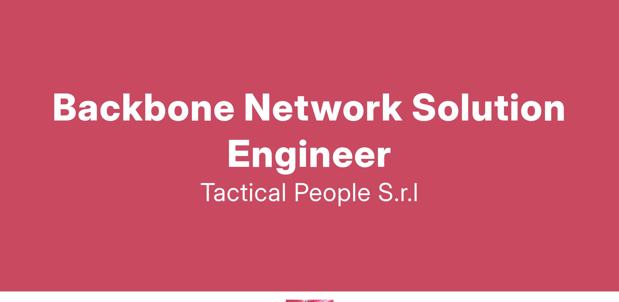 Unisciti a TACTICAL PEOPLE: Innovazione, Persone e Crescita nel Cuore della Digital Transformation Da oltre 20 anni, TACTICAL PEOPLE si posiziona come leader nel mercato ICT, guidando con passione e competenza i nostri clienti di medie e grandi dimensioni attraverso il dinamico percorso della digital transformation. La nostra mission è chiara: non solo abbracciare il cambiamento tecnologico, ma guidarlo, creando soluzioni all'avanguardia che plasmino il futuro digitale. In TACTICAL PEOPLE, crediamo fortemente nel mettere le persone al centro di ogni nostra iniziativa. Le persone sono il cuore pulsante della nostra azienda; il loro benessere, la loro crescita e il loro sviluppo sono la nostra priorità. Ci impegniamo a condividere le strategie aziendali con trasparenza e a fornire formazione e supporto a ogni livello, garantendo che ogni membro del team sia equipaggiato per eccellere e innovare. Stiamo cercando individui che condividano la nostra visione, che siano guidati dalla passione per la tecnologia e che desiderino essere protagonisti nella costruzione di un futuro digitale più luminoso. Se sei pronto a far parte di una squadra che valorizza il talento, incoraggia la crescita personale e professionale e lavora in prima linea nel settore della digital transformation, TACTICAL PEOPLE è il posto giusto per te. Posizione Aperta: Backbone Network Solution Engineer Sr Sede: ibrido con presenza su Sesto Fiorentino, Viaggi brevi all’estero richiesti Descrizione del ruolo: il candidato ideale deve avere almeno 5 anni in ruoli simili, con focus su telecomunicazioni, reti IP e infrastrutture IT. Cosa offriamo: Inserimento immediato in una Tech Community giovane e dinamica. TACTICAL LEARNING HUB, con corsi di aggiornamento e formazione. Il presente annuncio è rivolto ad entrambi i sessi, ai sensi delle leggi 903/77 e 125/91, e a persone di tutte le età e tutte le nazionalità, ai sensi dei decreti legislativi 215/03 e 216/03. I curricula dovranno pervenire completi di dicitura che autorizza il trattamento dei propri dati: “Si autorizza al trattamento dei dati personali ai sensi del D. Lgs. 196/2003.