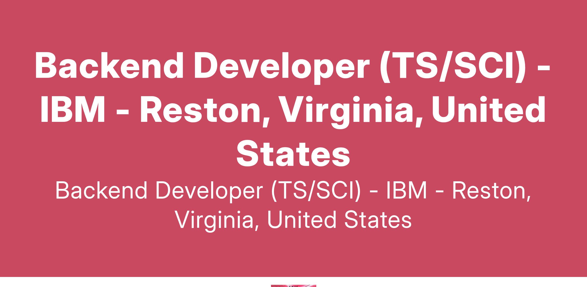 Job DescriptionIBM provides analytic consulting services to the US Government. The team innovated classified data service to support data-intensive assessment of Intelligence Surveillance Reconnaissance (ISR) system performance and effectiveness. We are seeking a backend developer/architect to improve existing and innovate new features for a classified ISR data and analytics service.