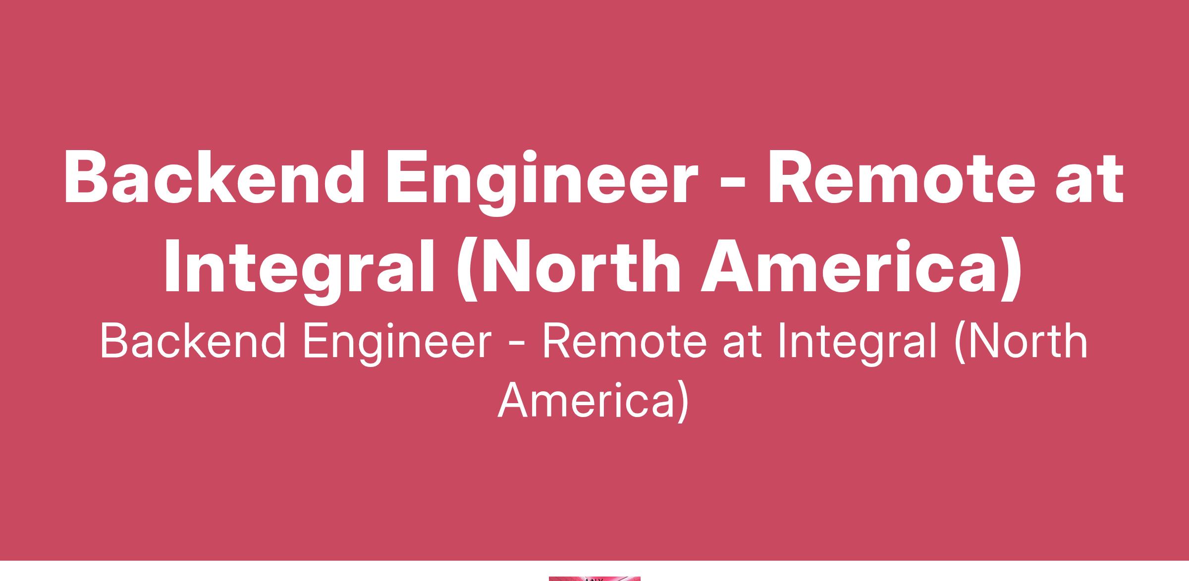 Backend Engineer - RemoteWe're Integral.At Integral, we are obsessed with helping web3 businesses streamline financial processes. We partner with the...